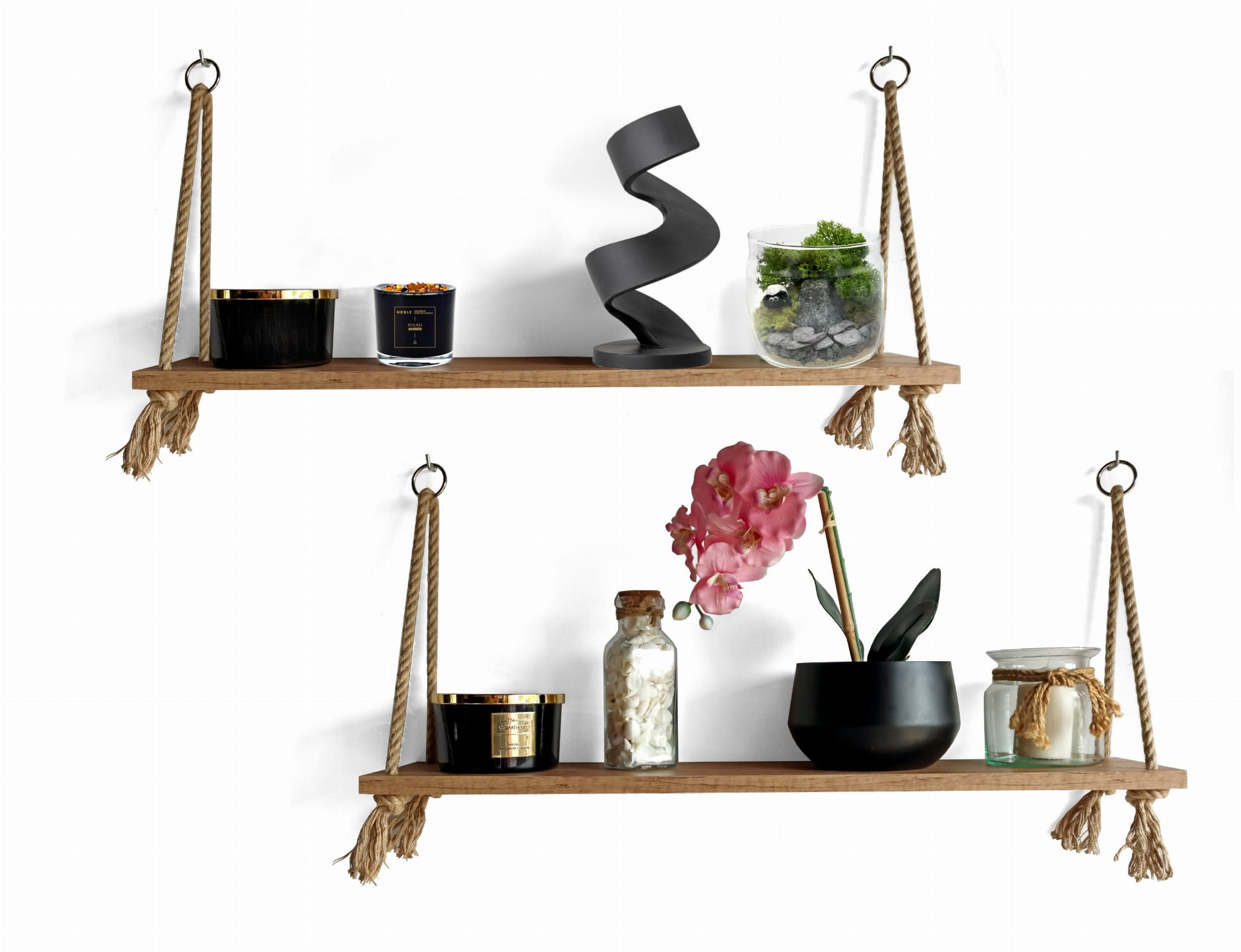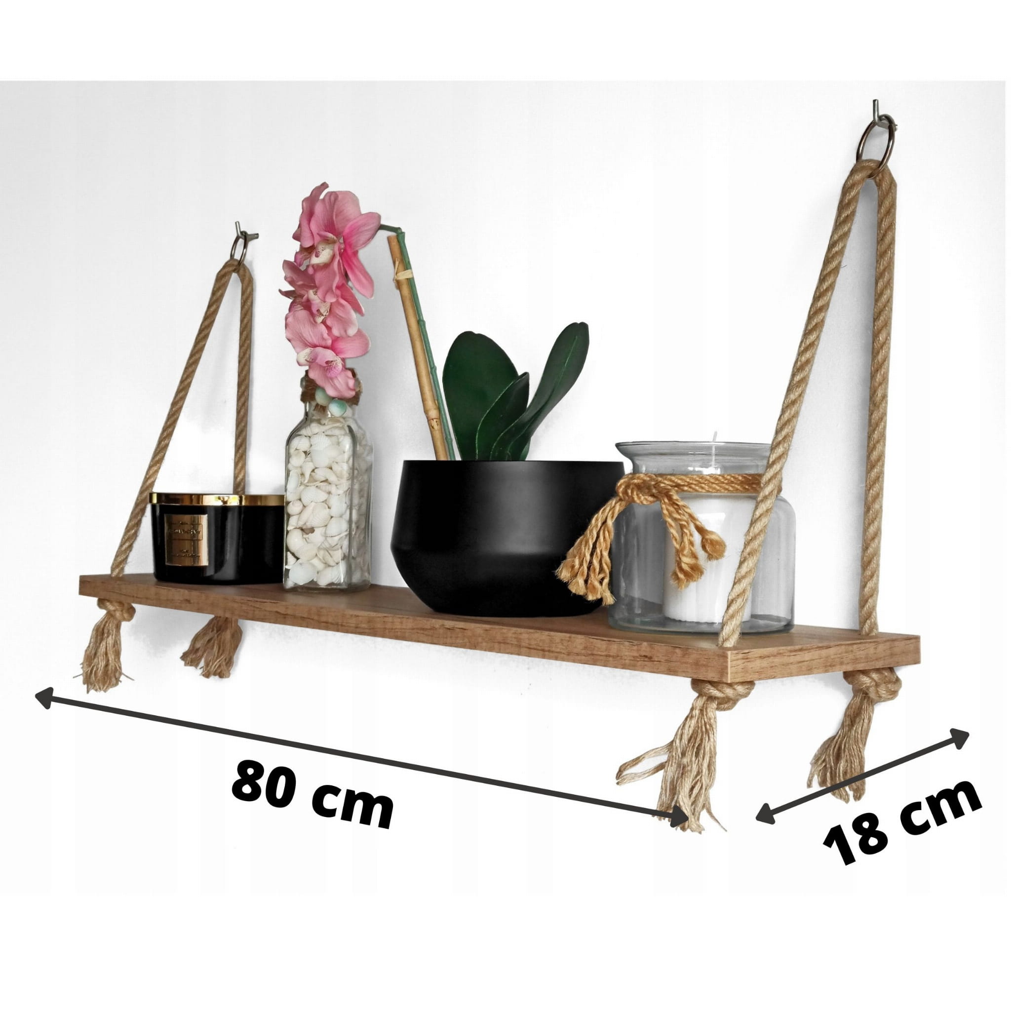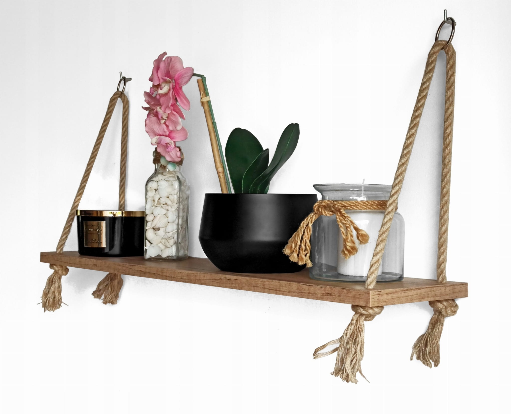 Inspirowane stylem loft, boho półki przydadzą się w salonie, przedpokoju, sypialni, pokoju dziennym a nawet w biurze. Prezentowane wiszące półki ścienne wprowadzą ład i porządek w Twoim pomieszczeniu. Te praktyczne meble uporządkują Twoje trofea, pięknie oprawione zdjęcia czy też inne przedmioty jak świeczki, figurki, książki czy też kwiaty doniczkowe.