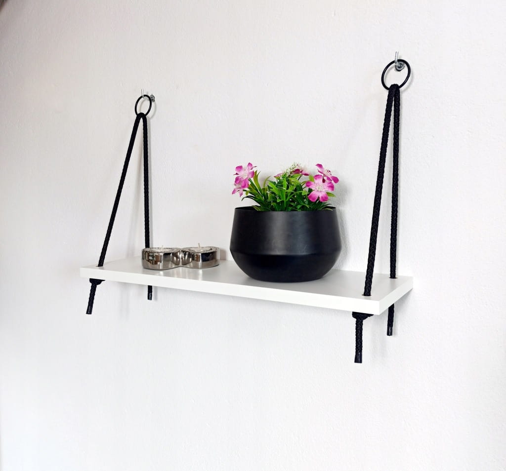 2 półki wiszące 56 cm na Czarnych sznurach linach Styl Nowoczesny