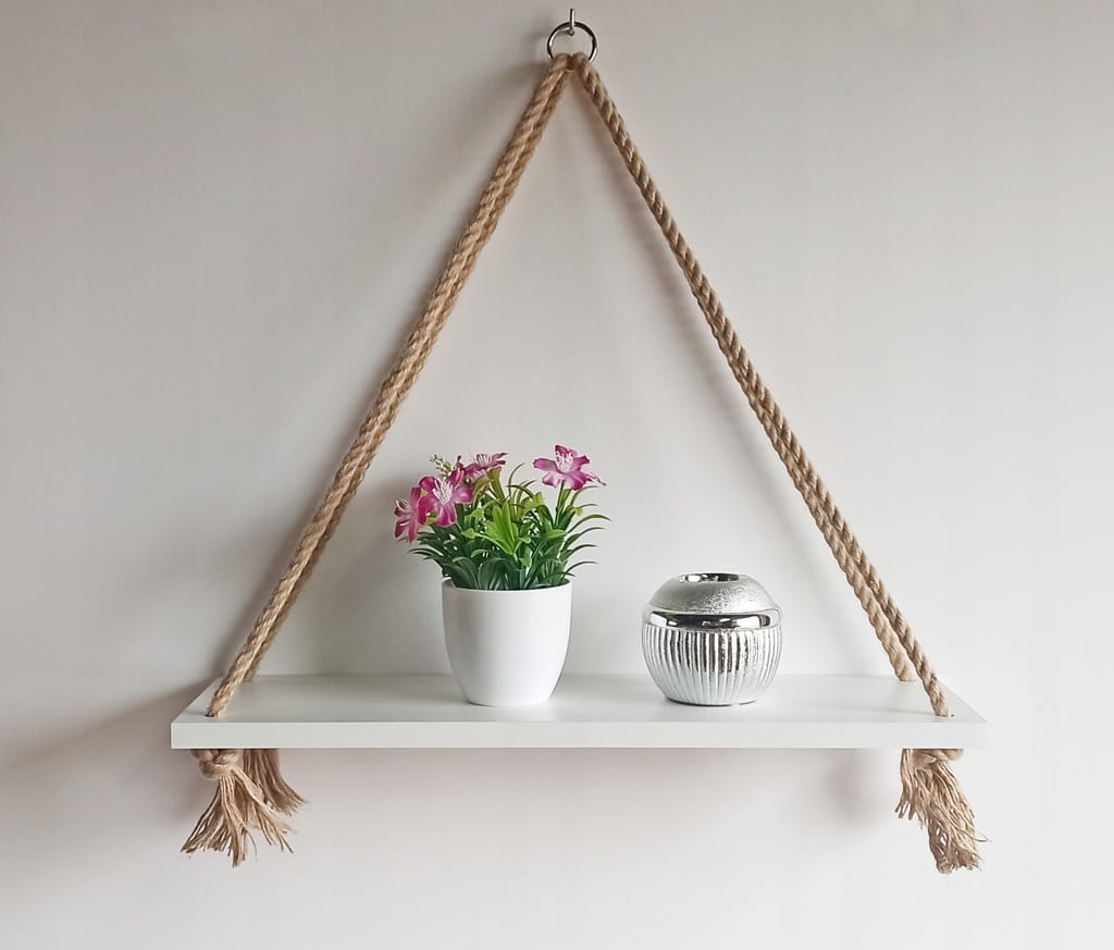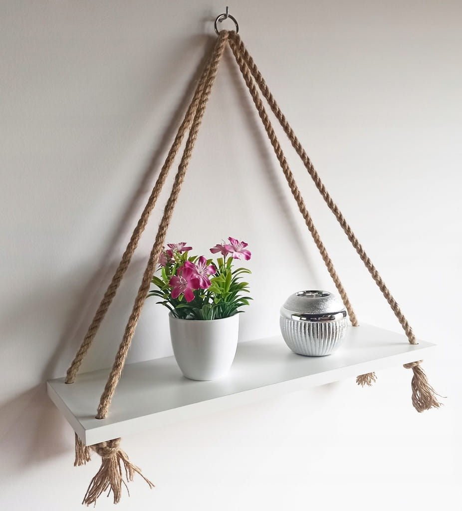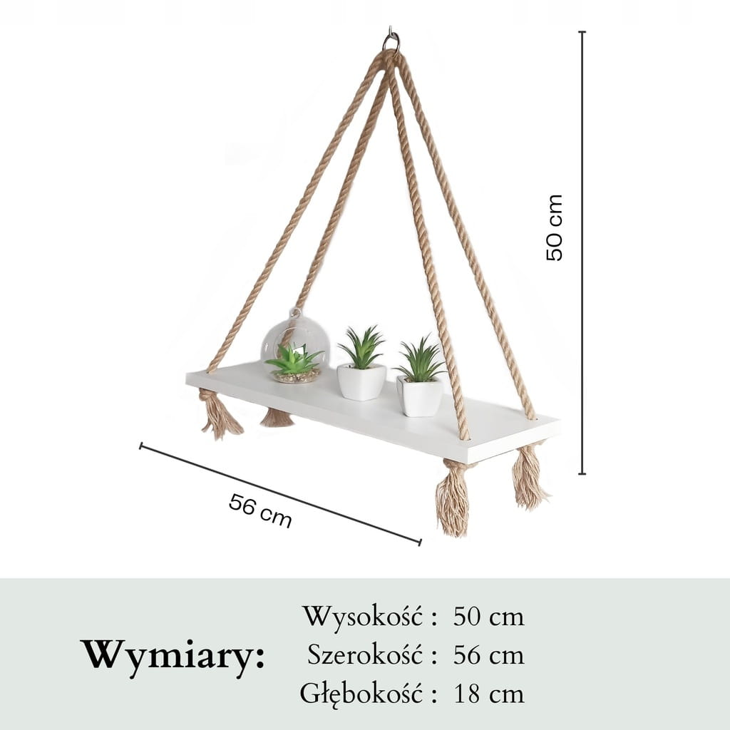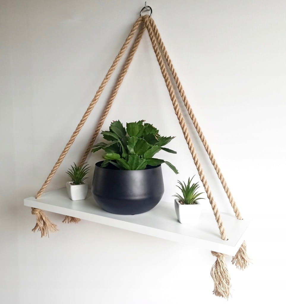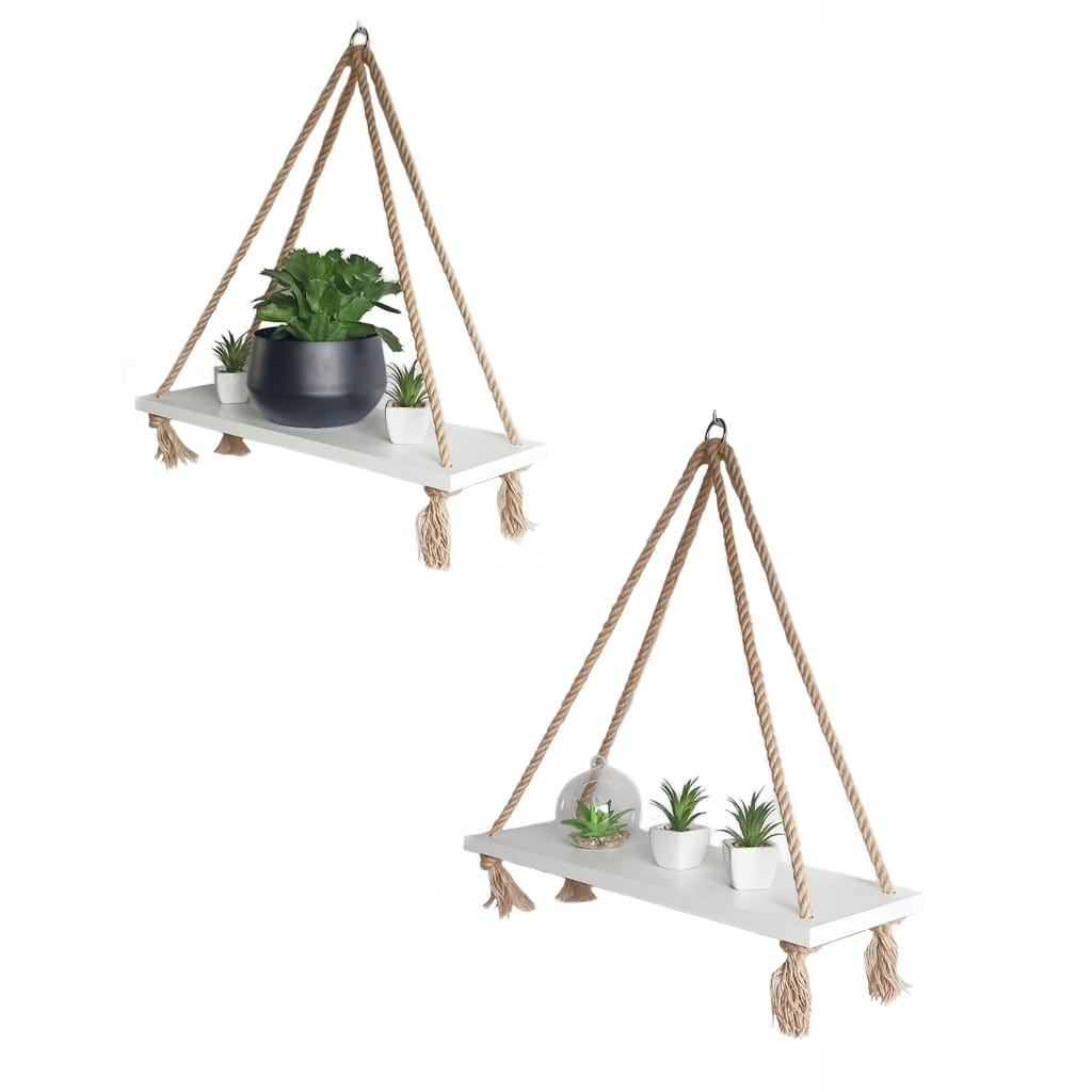 2 półki wiszące na sznurach linach piramidki białe boho 56 cm