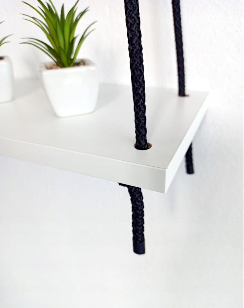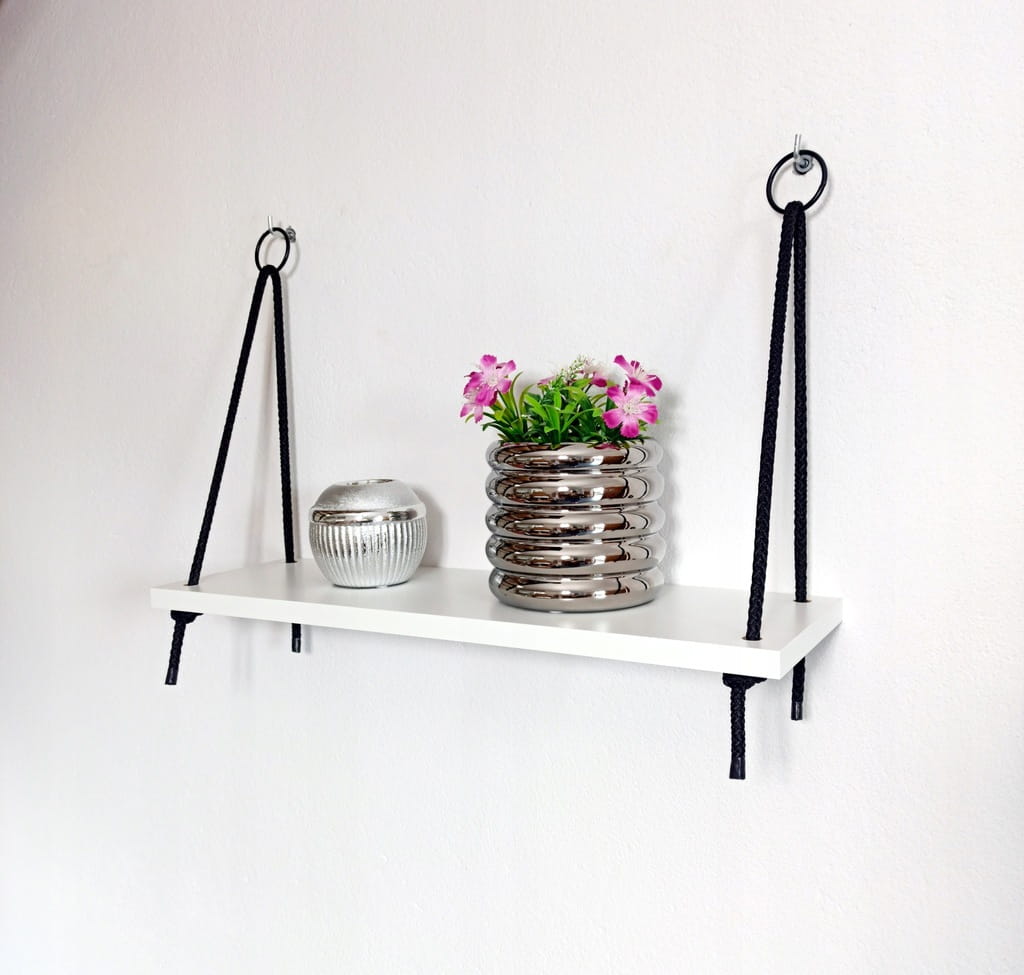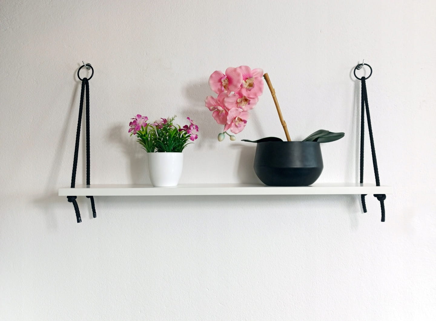 3 półki wiszące (2x55 cm i 1x80 cm) na Czarnych sznurach linach Styl Nowoczesny