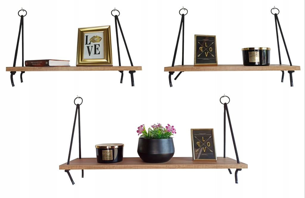 3 Półki wiszące na linach LOFT RUSTYKALNE INDUSTRIAL 2 x 56 cm i 1 x 80 cm
