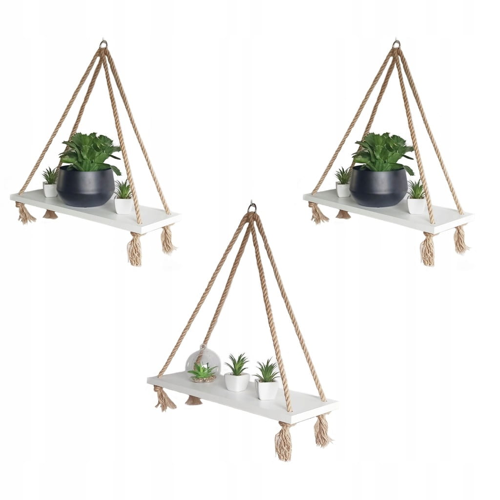 3 półki wiszące na linach piramidki białe styl skandynawski 56 cm