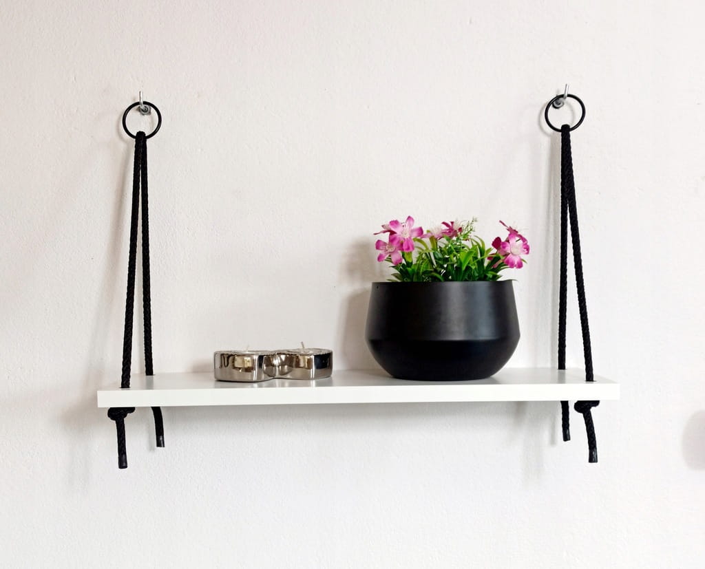 3 półki wiszące 56 cm na Czarnych sznurach linach Styl Nowoczesny
