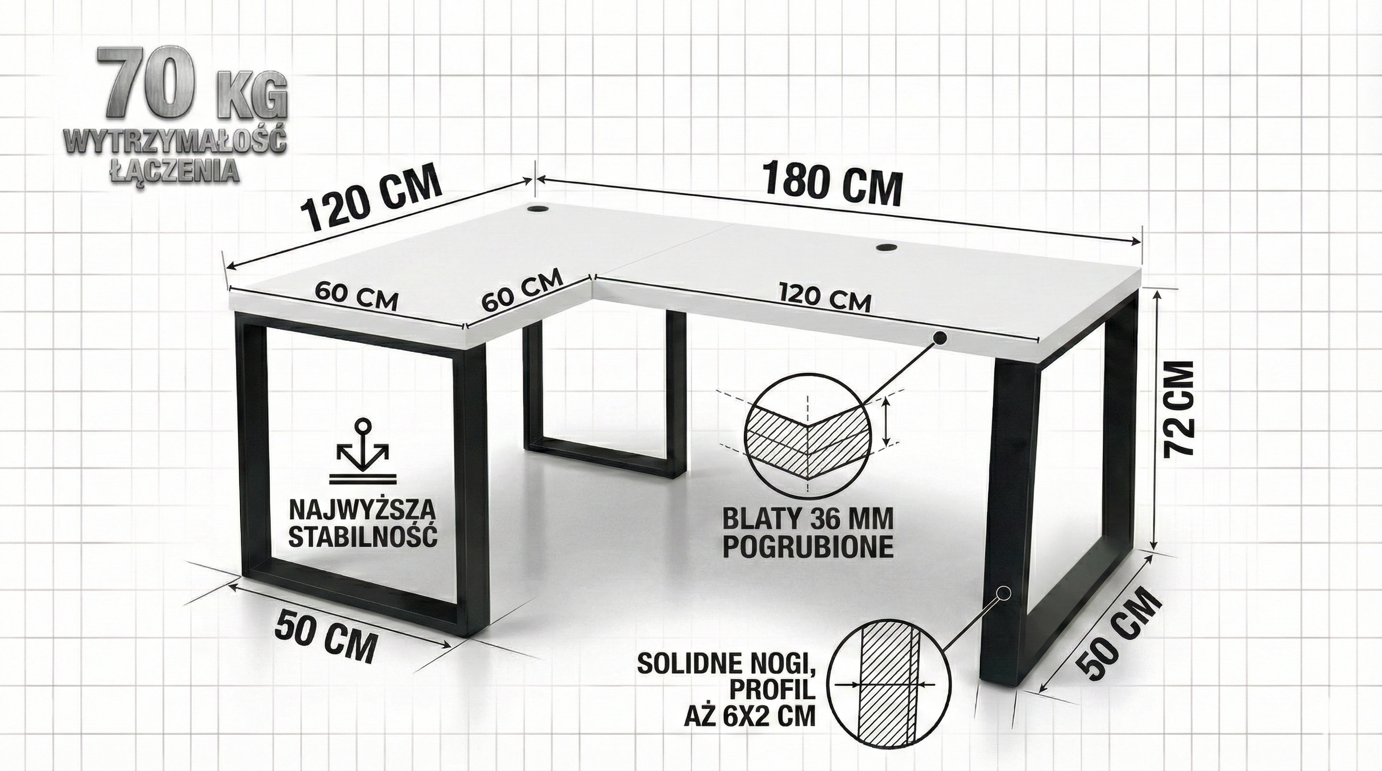 ✅Grubość blatu: 3,6 cm - Blat pogrubiony