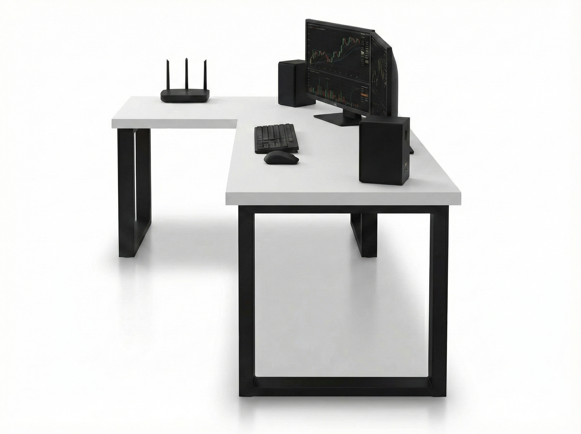 BIURKO GAMINGOWE KOMPUTEROWE NAROŻNE 120x180x60 cm Białe gruby blat 36 mm w stylu Loft z czarnymi metalowymi nogami