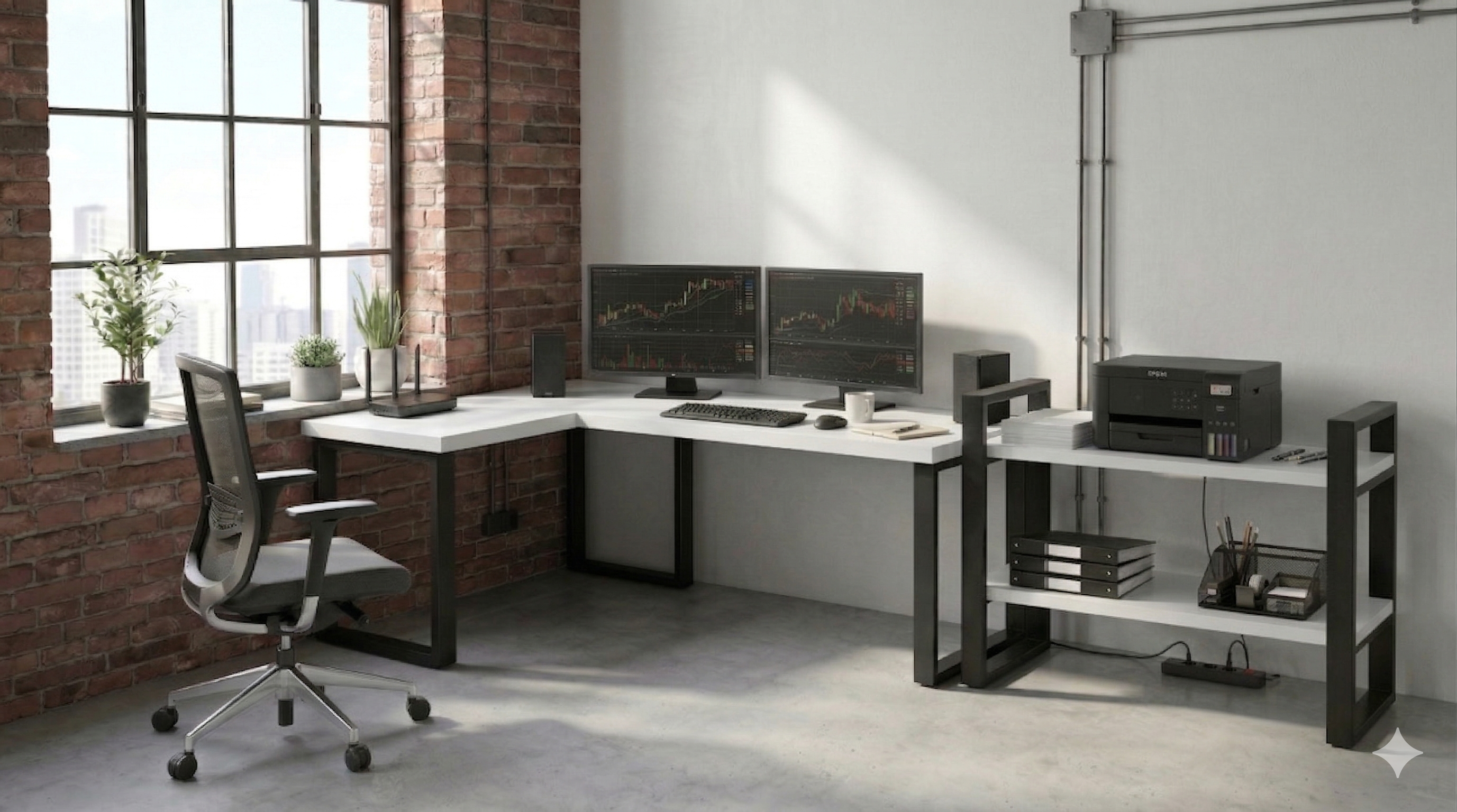 To eleganckie narożne biurko w stylu loft doskonale wpisuje się w trendy wnętrzarskie, nadając Twojemu wnętrzu nowoczesny wygląd.