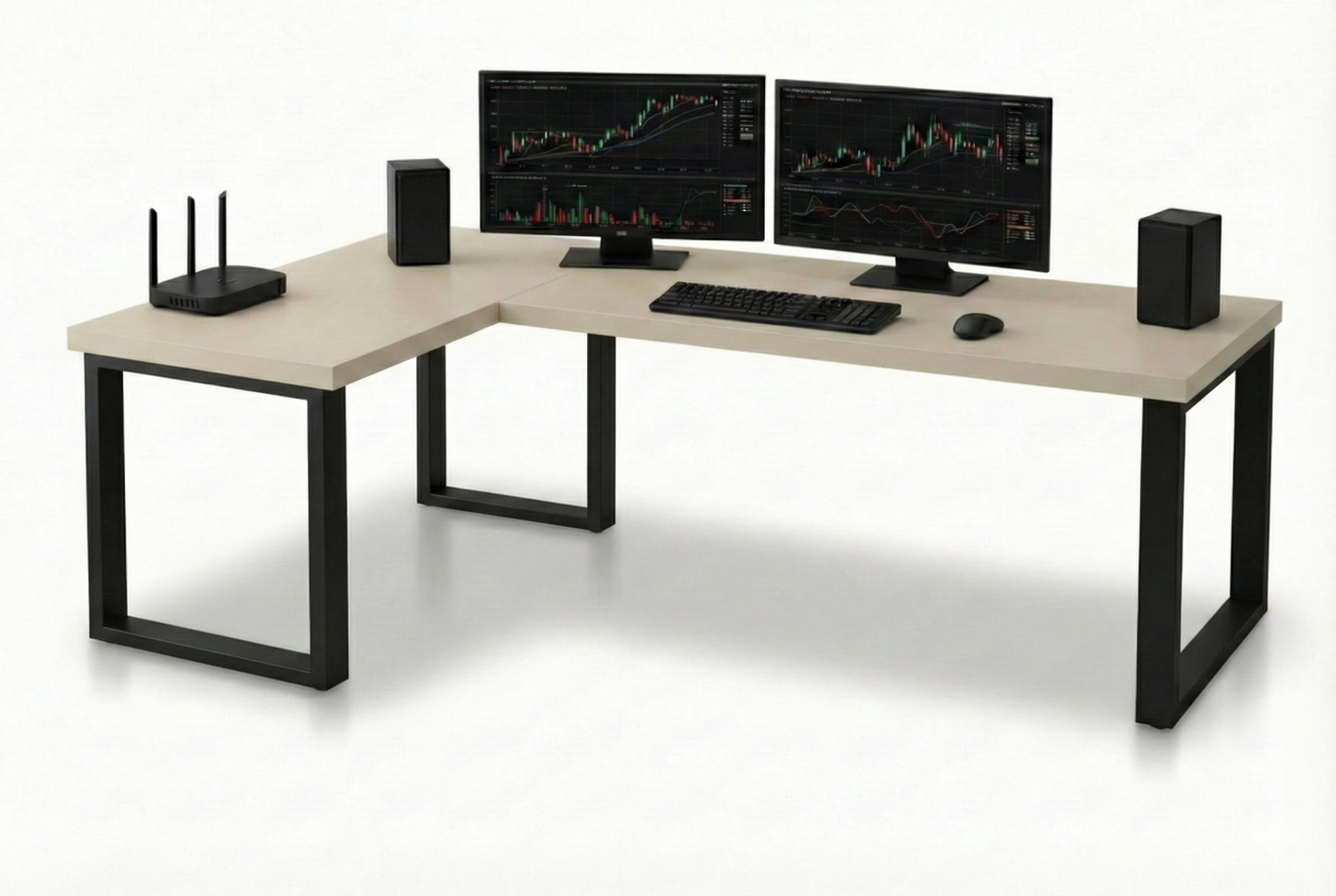 Biurko składa się z 2 blatów o wymiarach 120 x 60 cm i grubości 36 mm oraz 3 nóg loft, które zapewnią solidność i wygodę użytkowania. Metalowe nogi o profilu 6x2 cm w kolorze czarnym nadają mu industrialnego charakteru będąc jednocześnie stabilnym fundamentem.