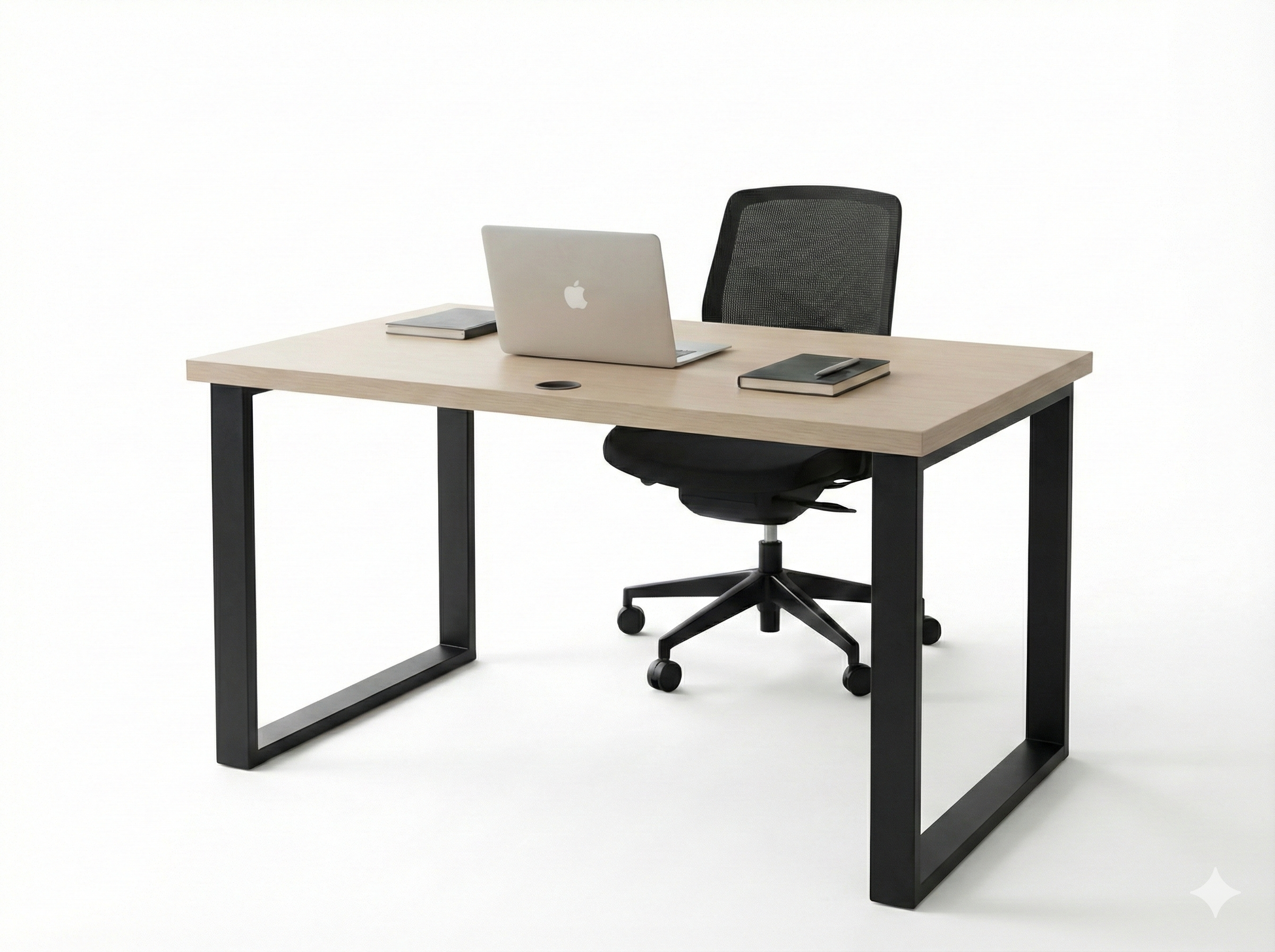 Blat o wymiarach 120 x 60 cm i grubości 36 mm zapewnia solidność i wygodę użytkowania. Metalowe nogi o profilu 6x2 cm w kolorze czarnym nadają mu industrialnego charakteru będąć jednocześnie stabilnym fundamentem.
