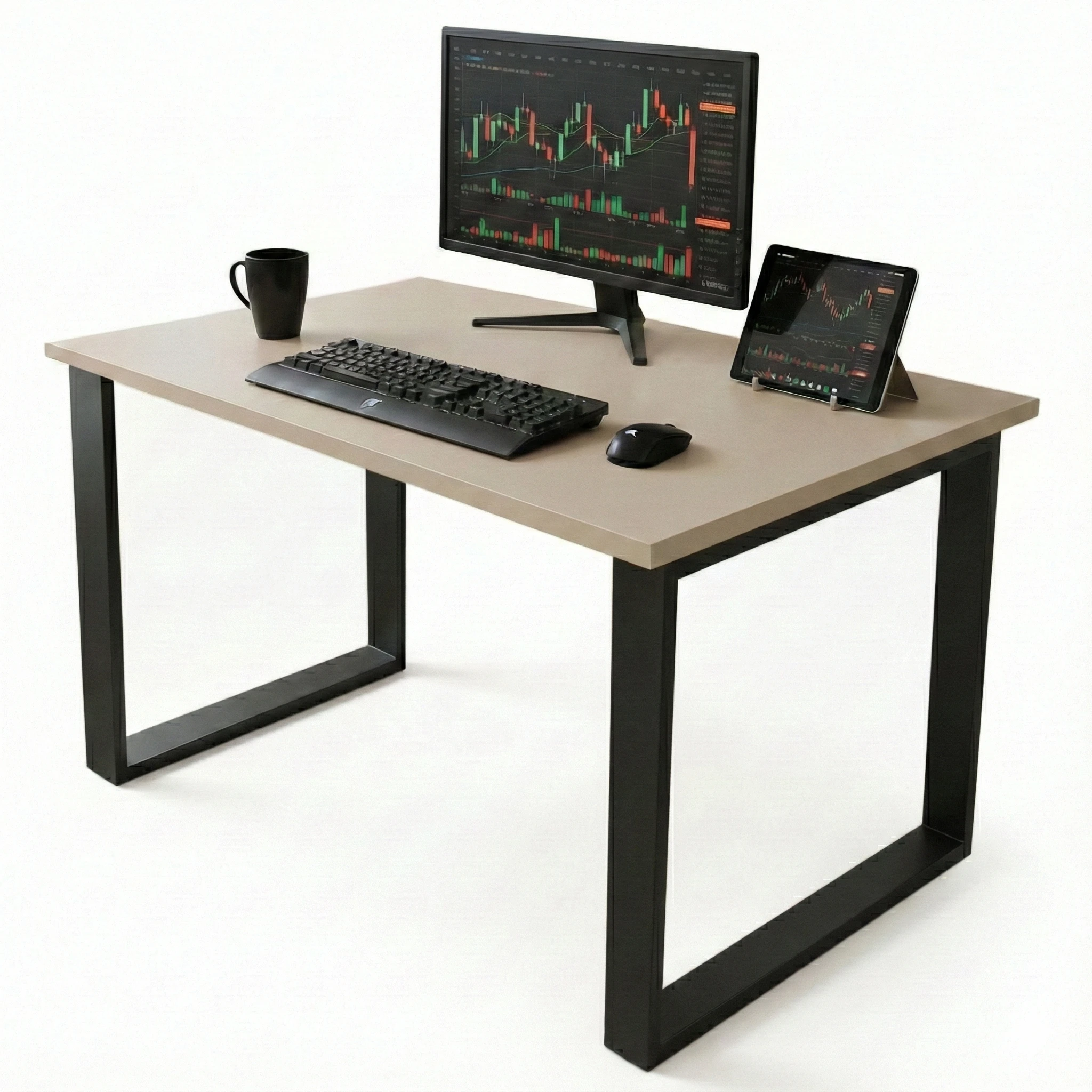Blat o wymiarach 120 x 60 cm i grubości 18 mm zapewnia solidność i wygodę użytkowania. Metalowe nogi o profilu 6x2 cm w kolorze czarnym nadają mu industrialnego charakteru będąć jednocześnie stabilnym fundamentem.