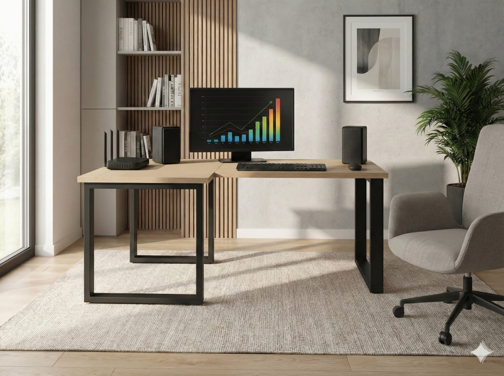 To eleganckie narożne biurko w stylu loft doskonale wpisuje się w trendy wnętrzarskie, nadając Twojemu wnętrzu nowoczesny wygląd.