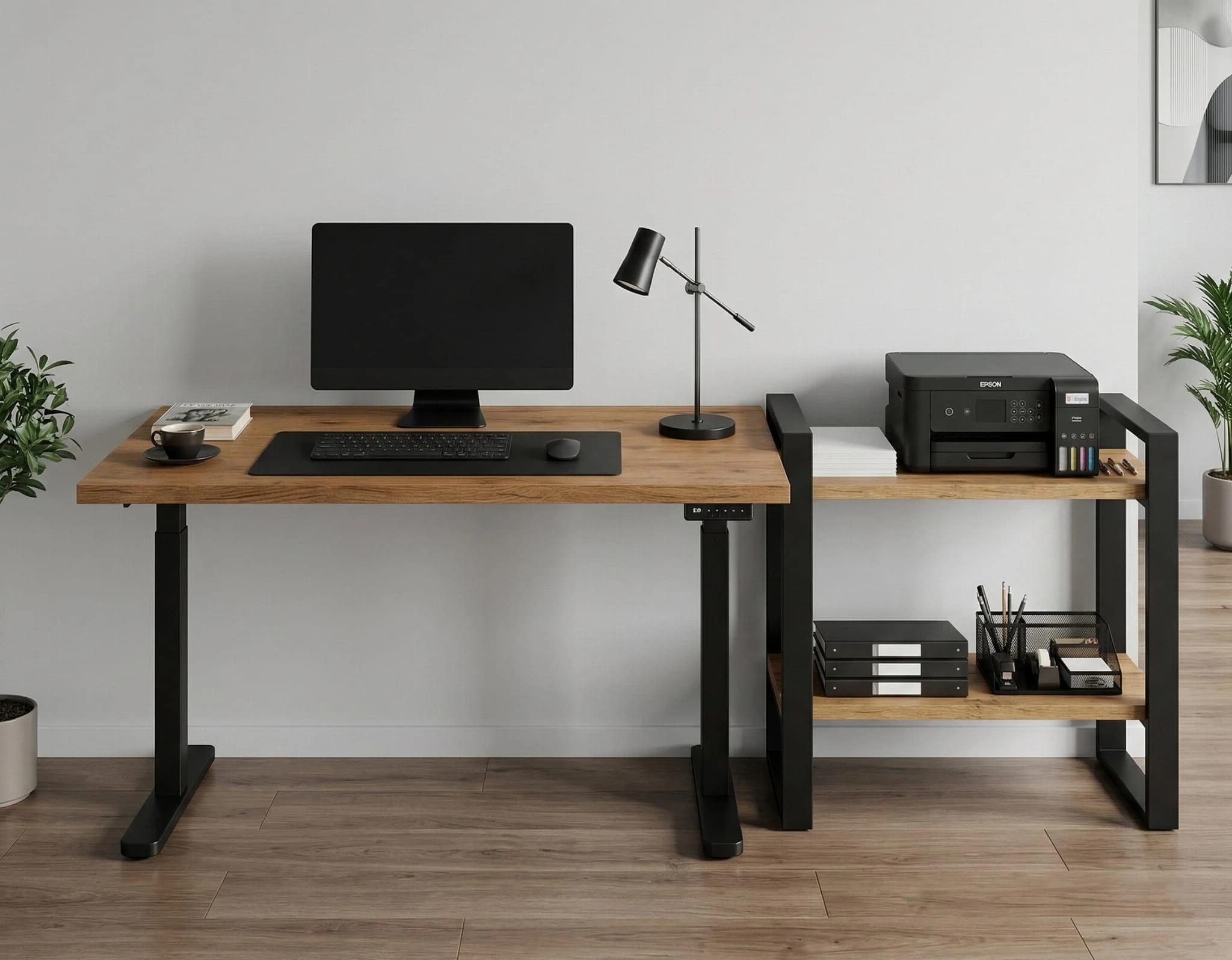 Dzięki regulowanej szerokości stelaża stworzysz przestrzeń, jaką lubisz — rozstaw nóg biurka dopasujesz do swoich potrzeb i warunków mieszkaniowych.