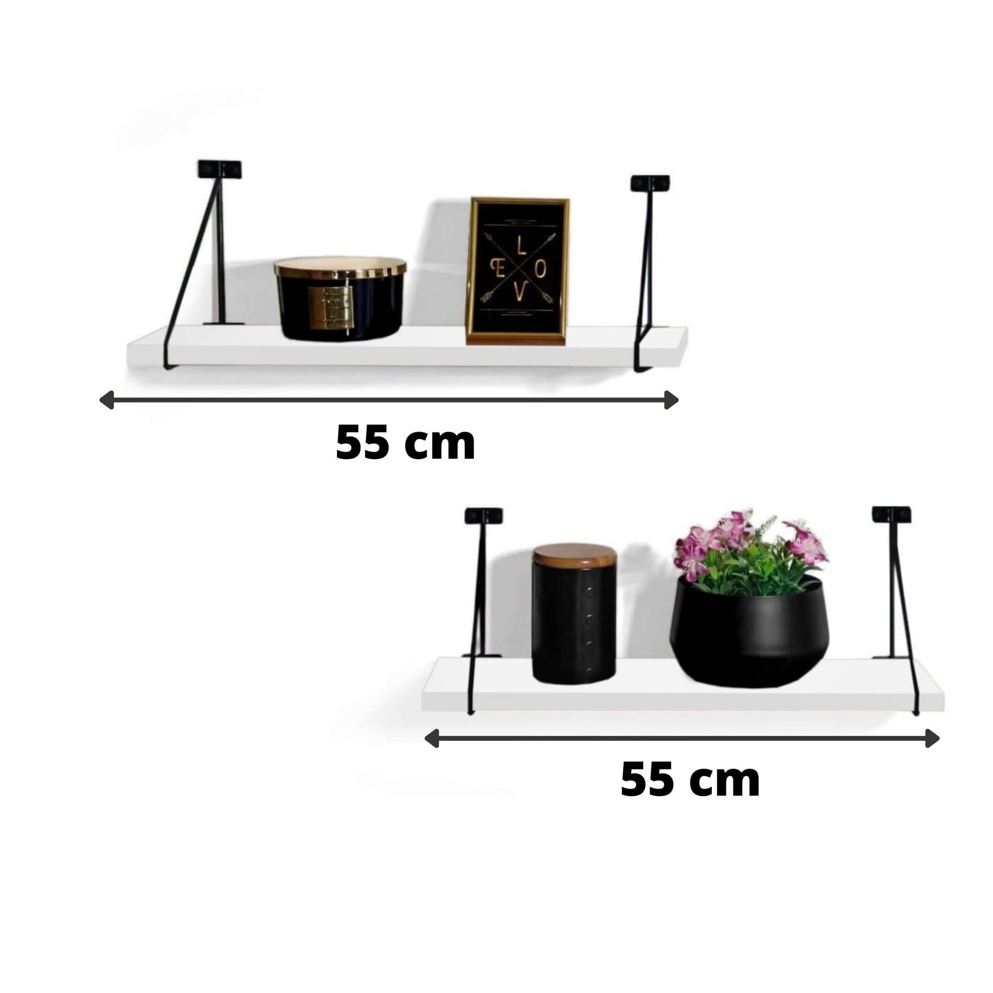 - 2 półki z płyty laminowanej w kolorze czarnym o szerokości 55 cm każda