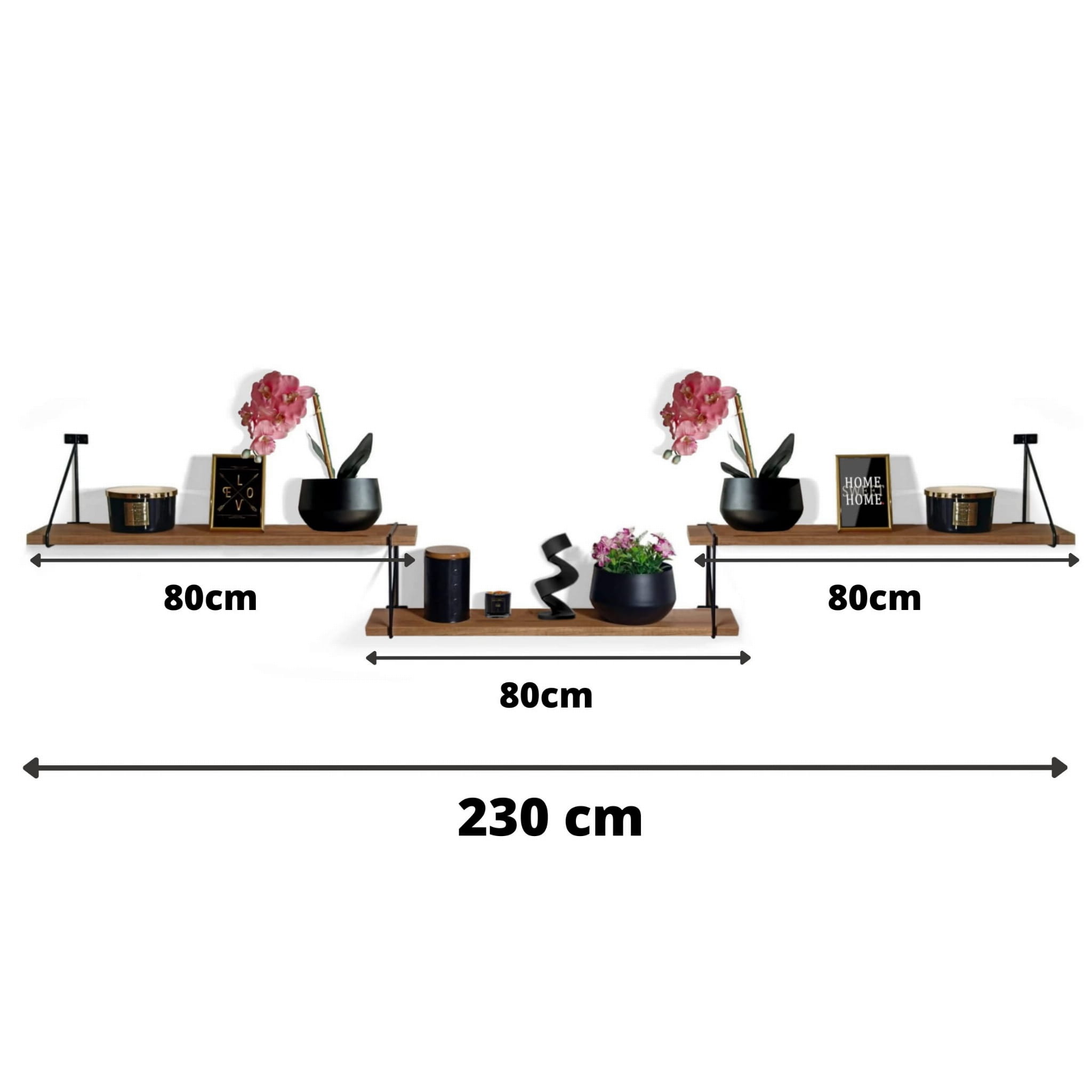 KOMPLET 3 PÓŁKI ŚCIENNE WISZĄCE LOFT INDUSTRIALNA 230 cm