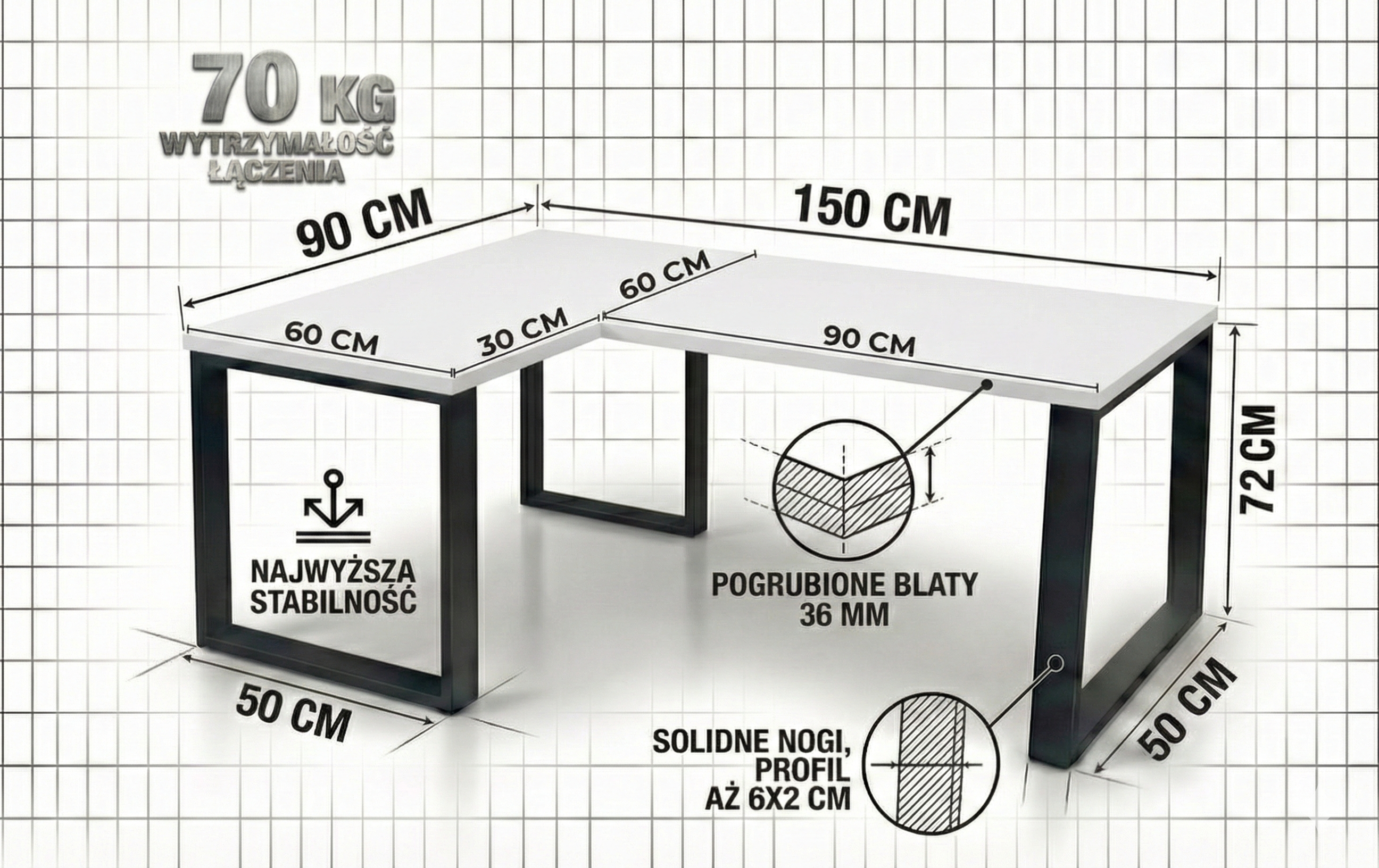 ✅Grubość blatu: 3,6 cm - Blat pogrubiony