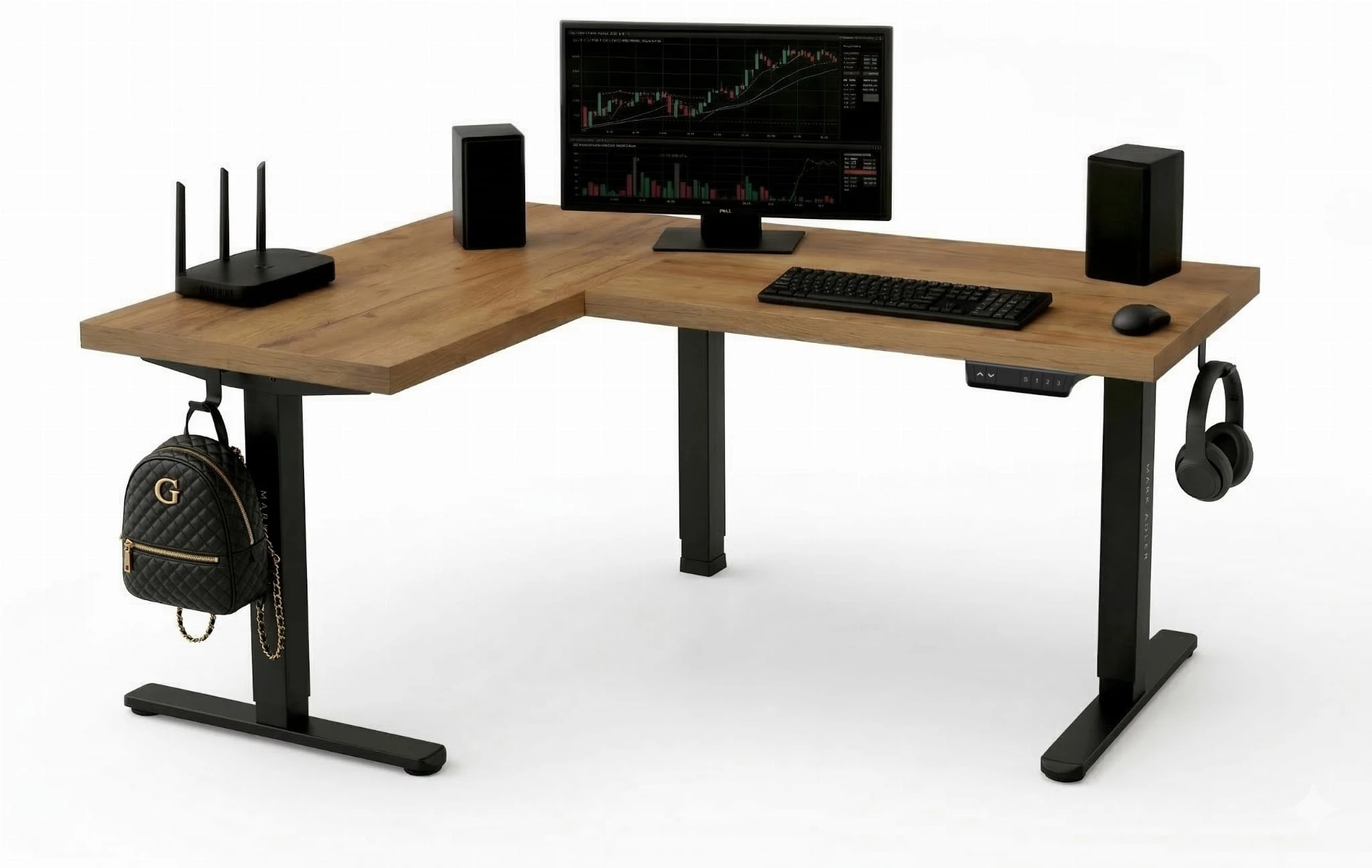 NAROŻNE BIURKO ELEKTRYCZNE 150x120 cm Blat pogrubiony 36 mm