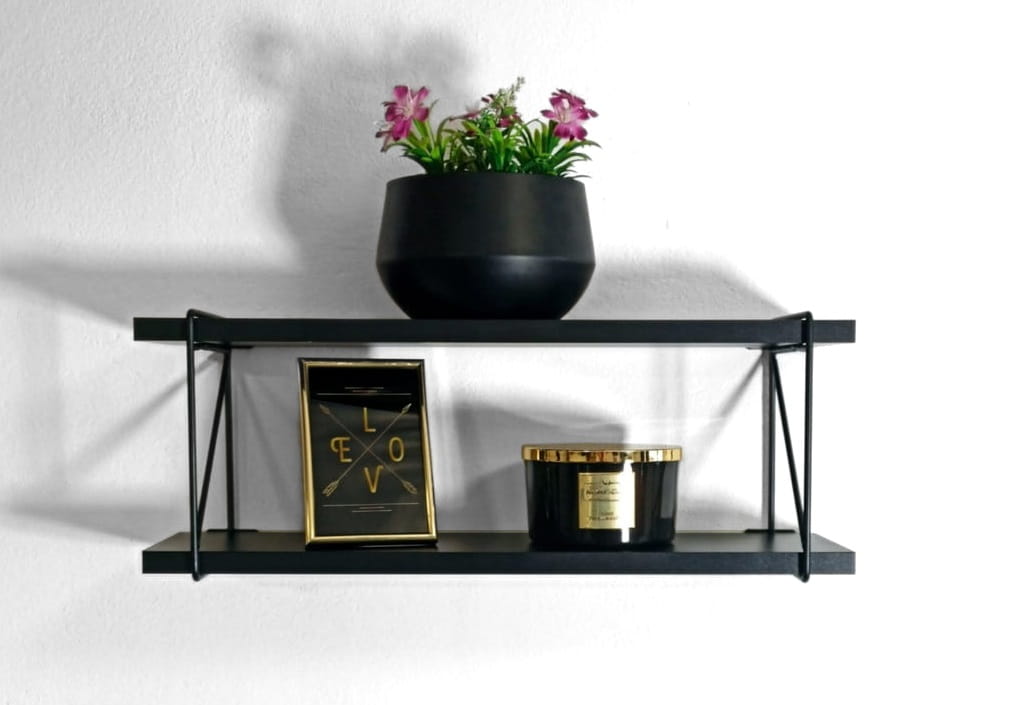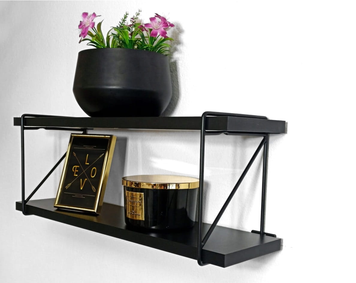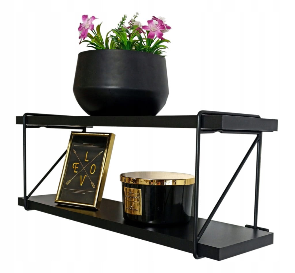 PÓŁKA ŚCIENNA 2 POZIOMY CZARNA 56 cm