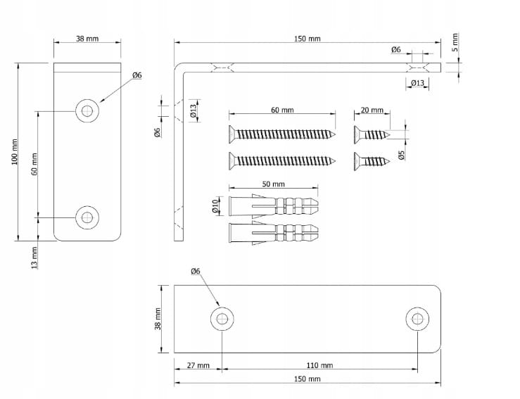 - wkręty mocujące w kolorze czarnym oraz kołki