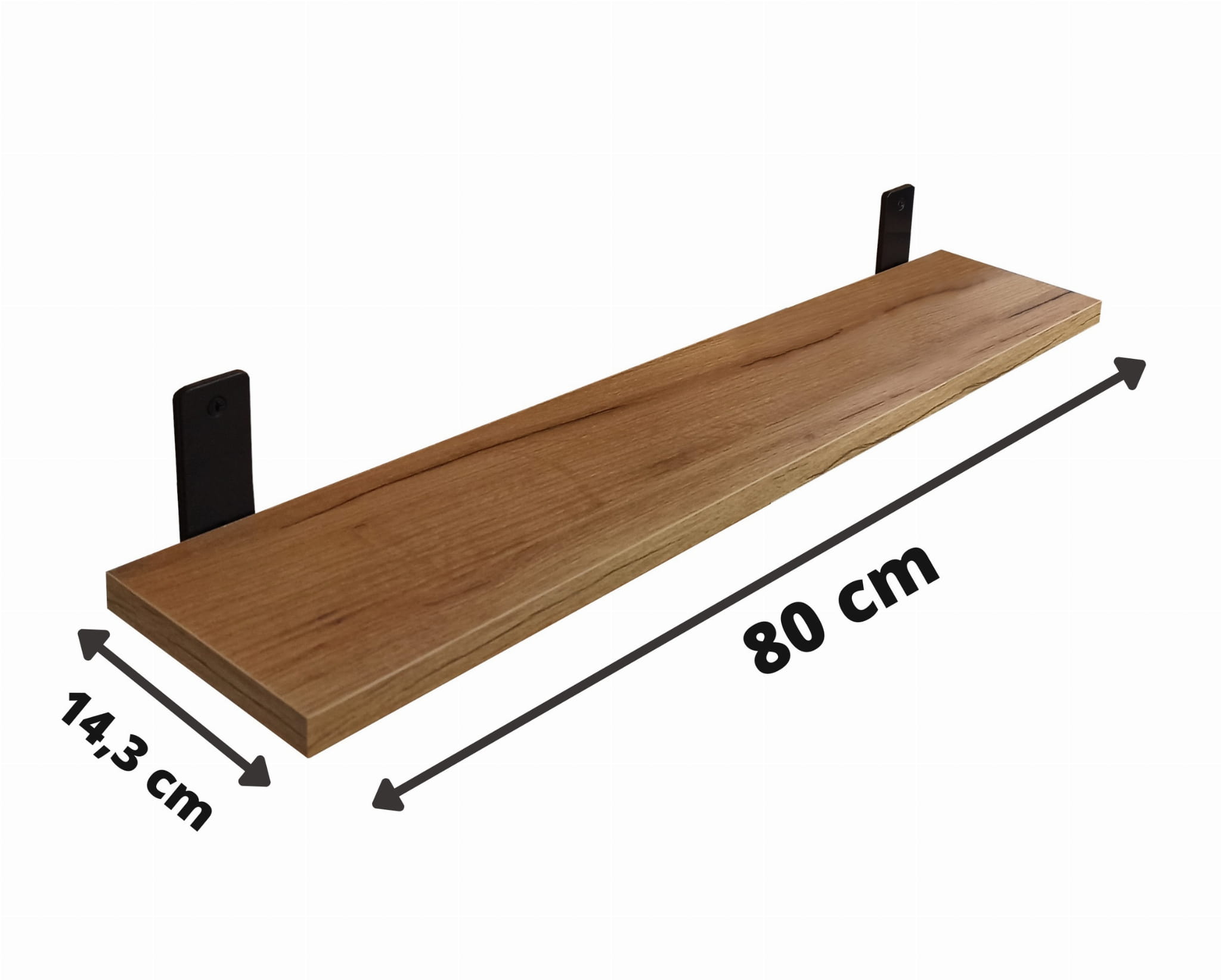 - 2 półki z płyty laminowanej w kolorze dąb craft złoty o szerokości 80 cm oraz 18 cm głębokości.