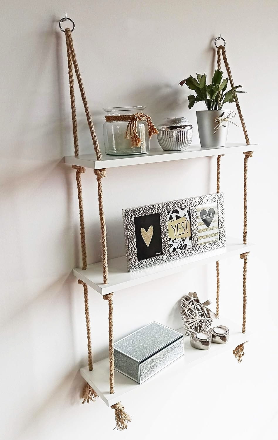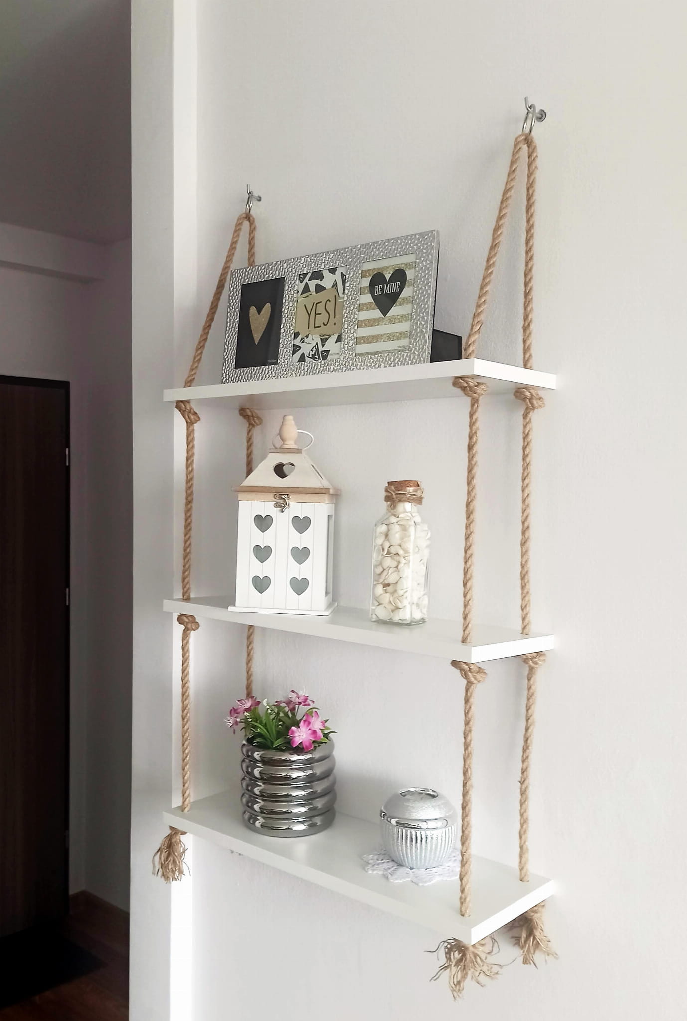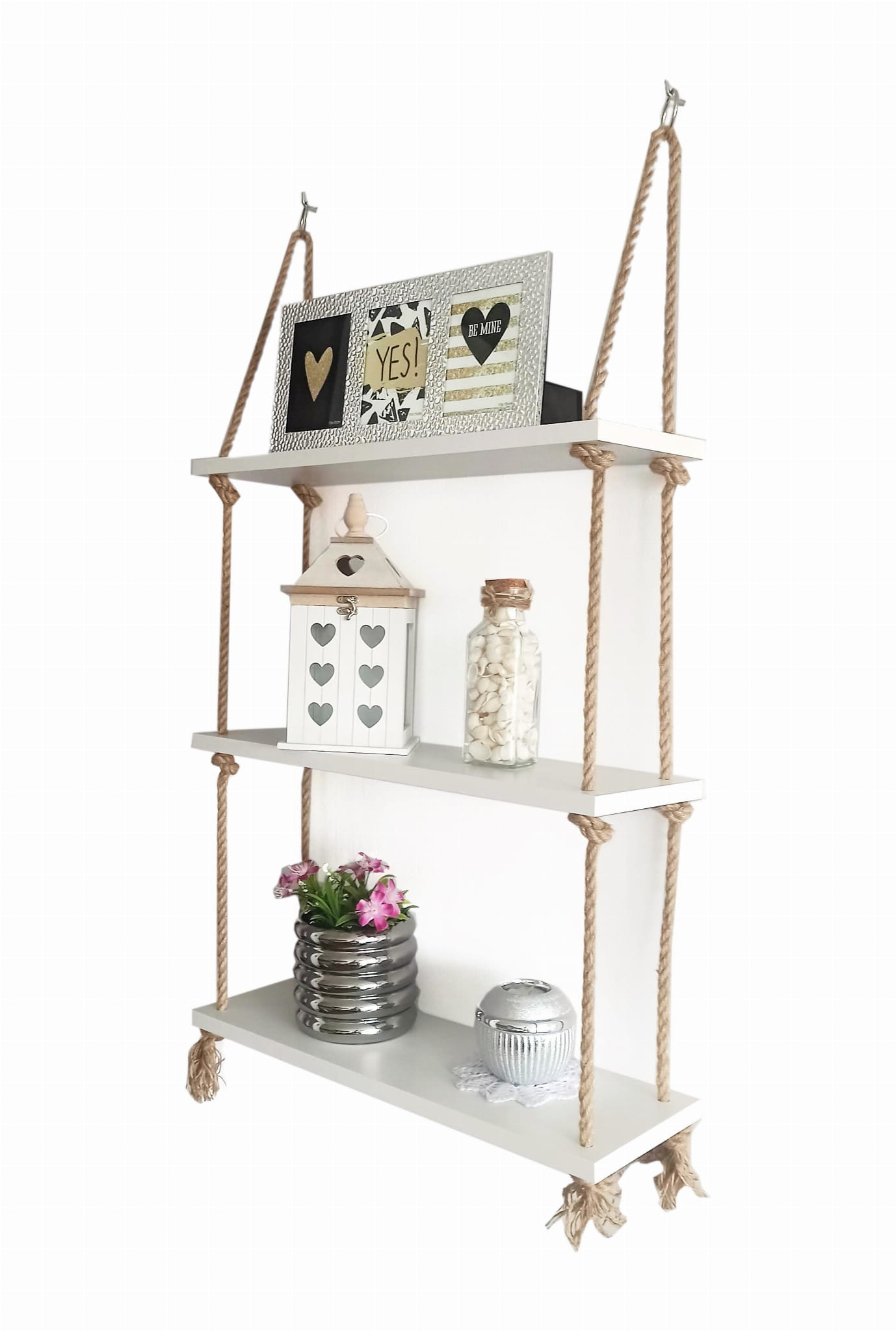 Półka wisząca 3 poziomy na linach biel alpejska styl skandynawski boho