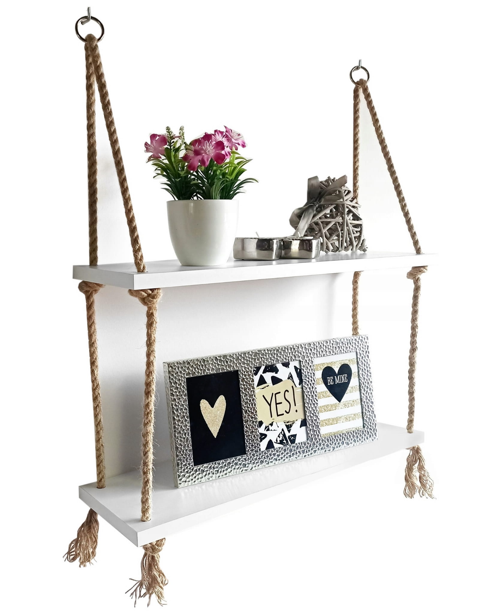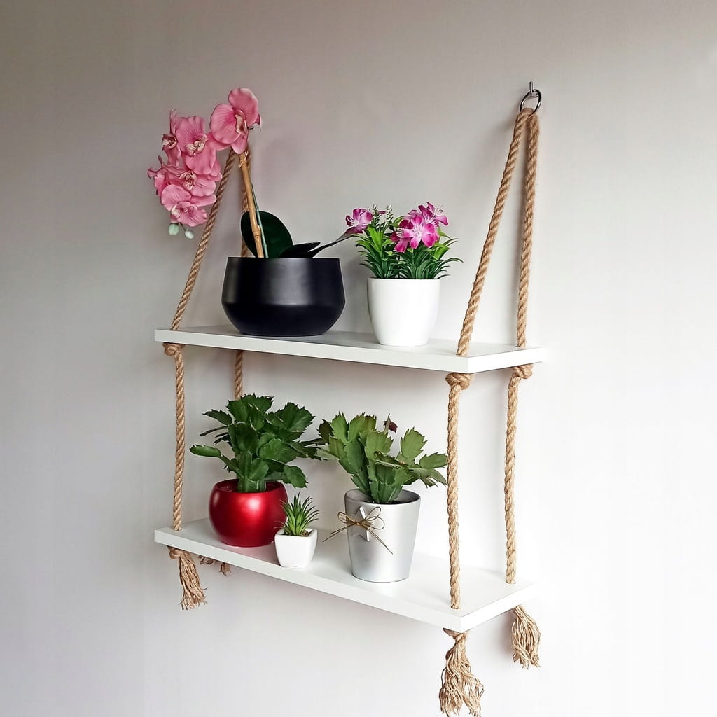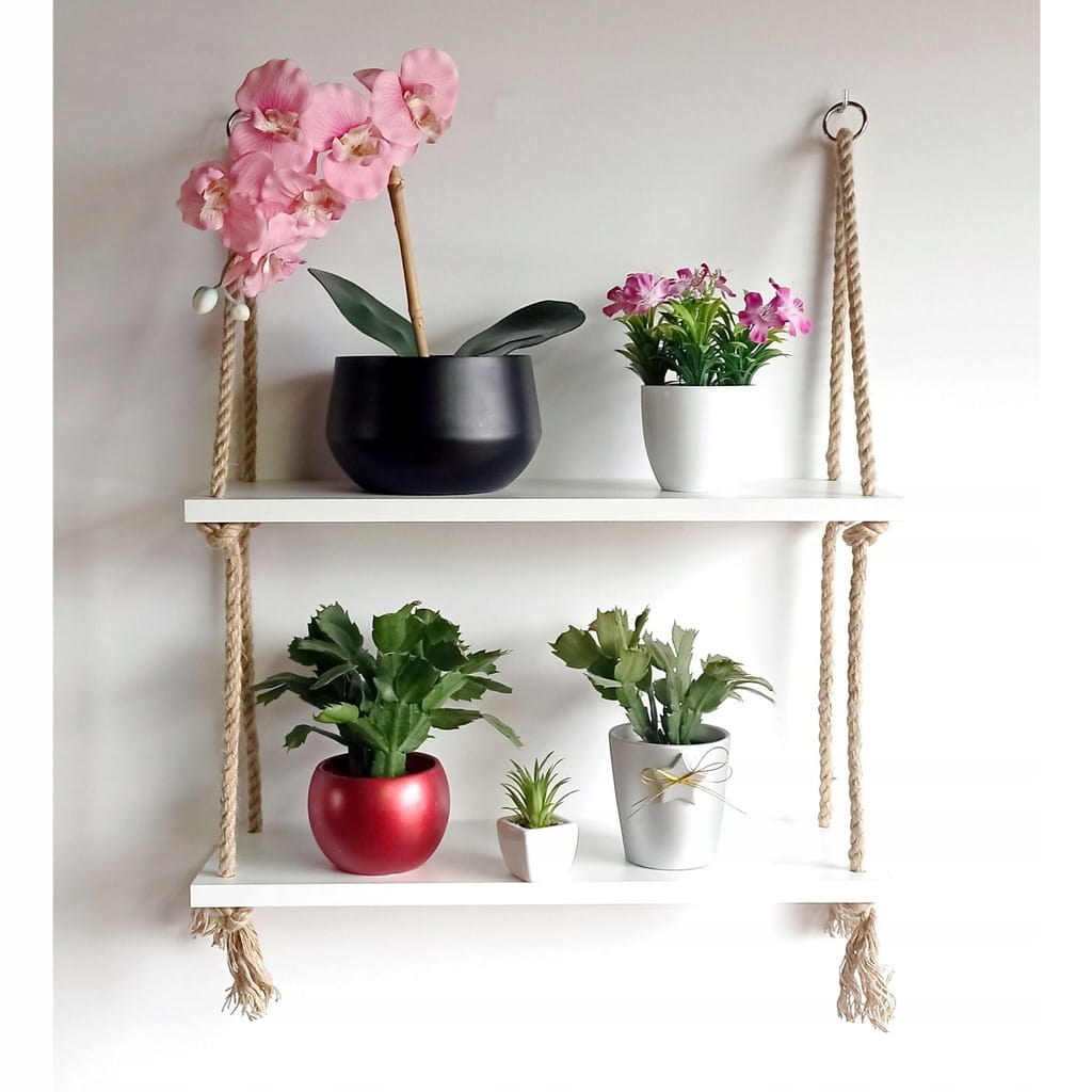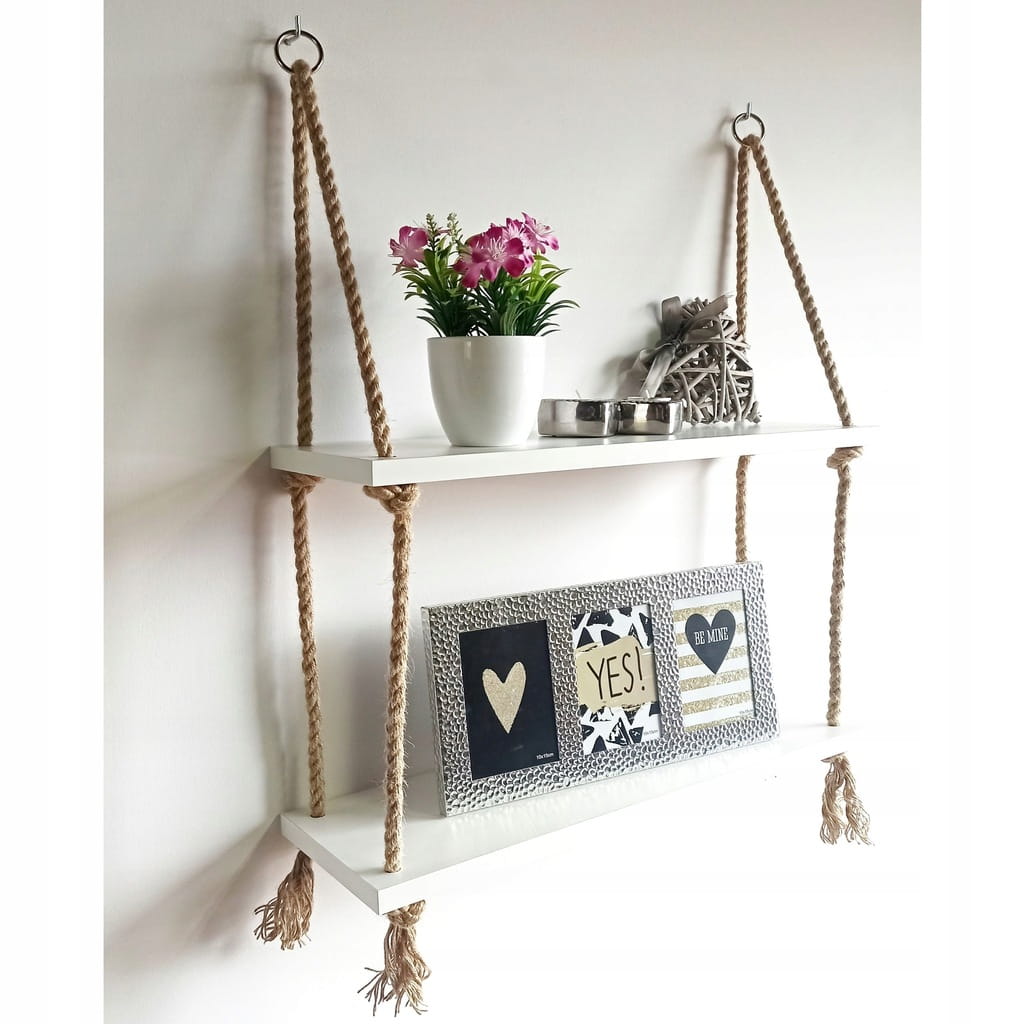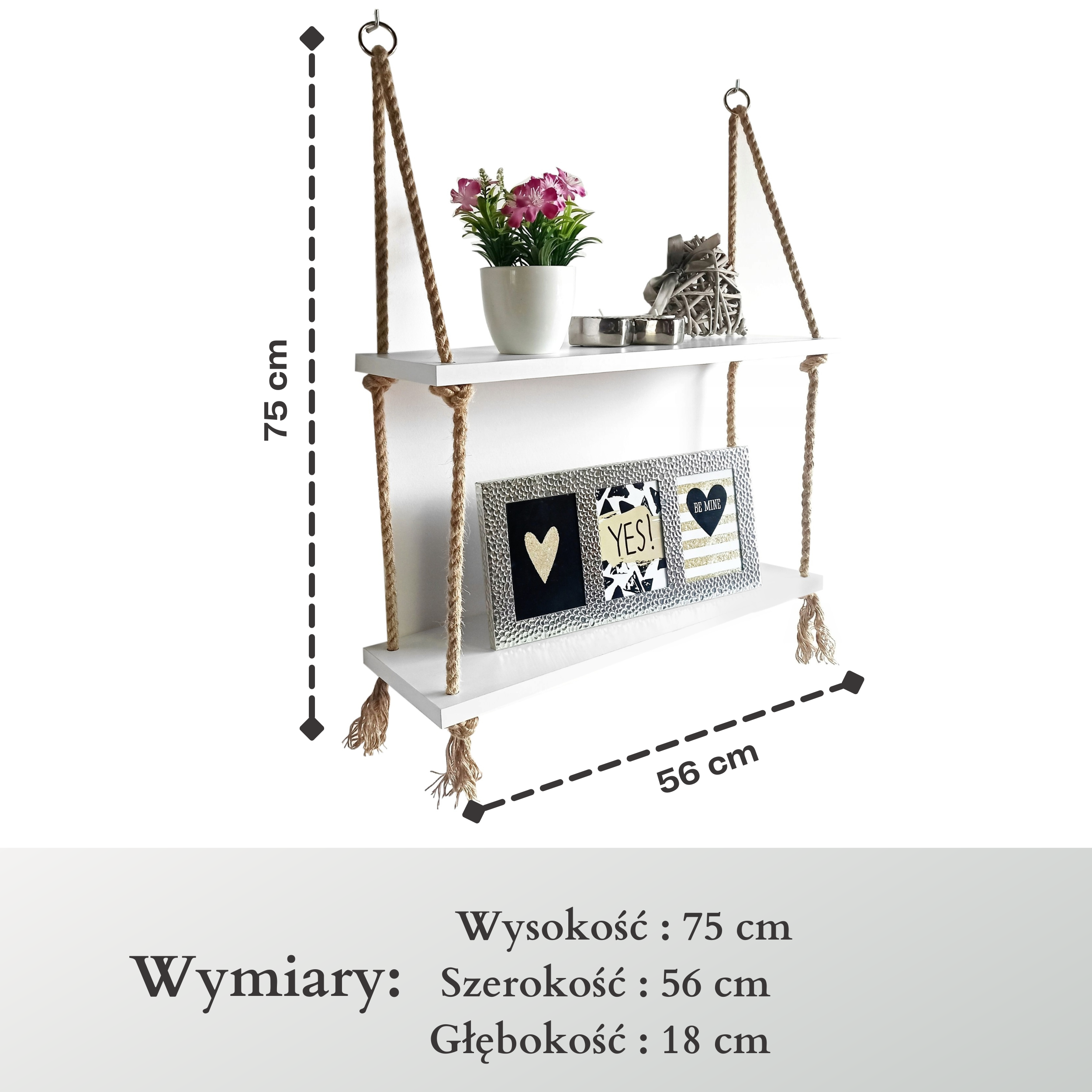 Półka wisząca 2 poziomy na linach biel alpejska styl skandynawski boho