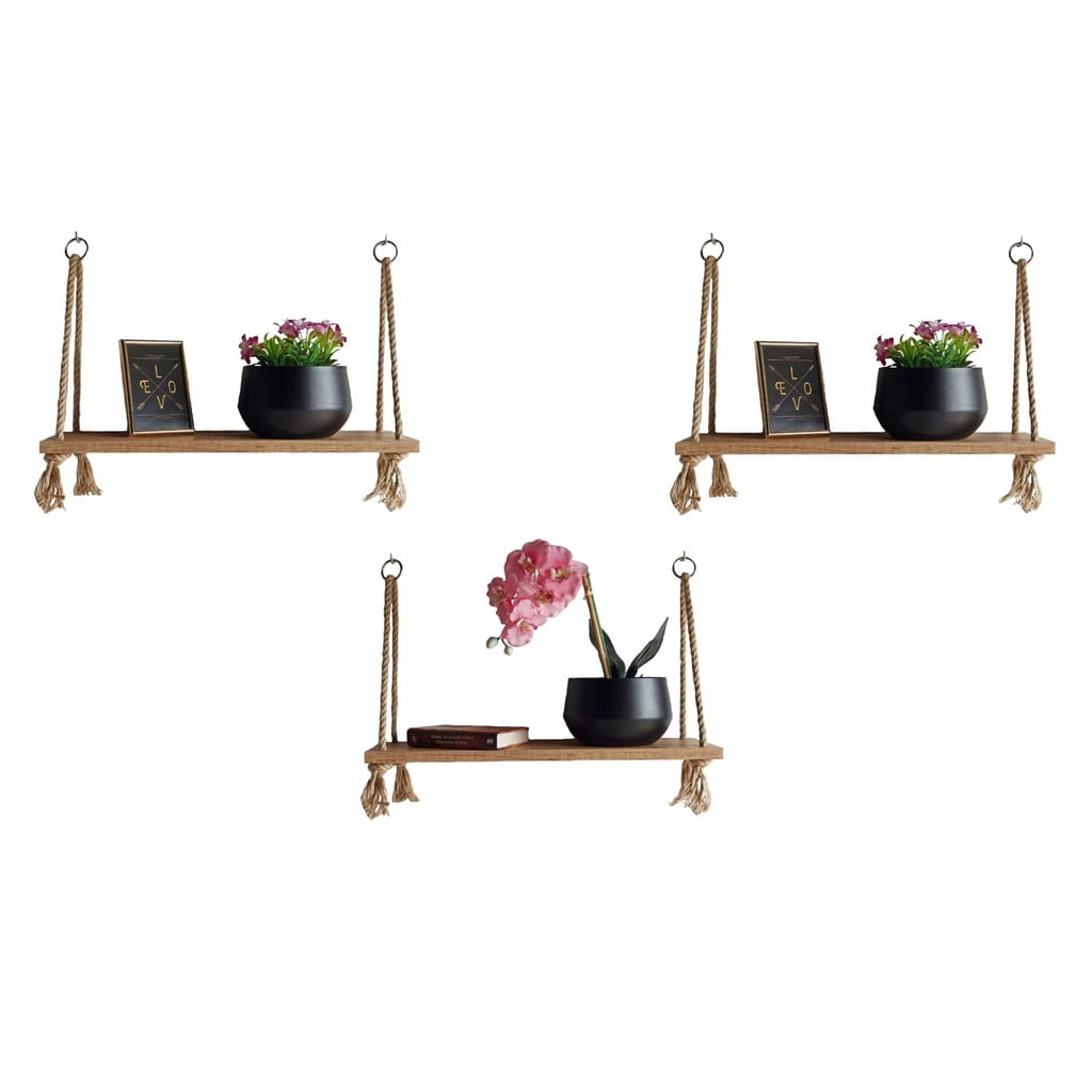 Półka wisząca na linach LOFT BOHO zestaw 3 sztuki 55 cm
