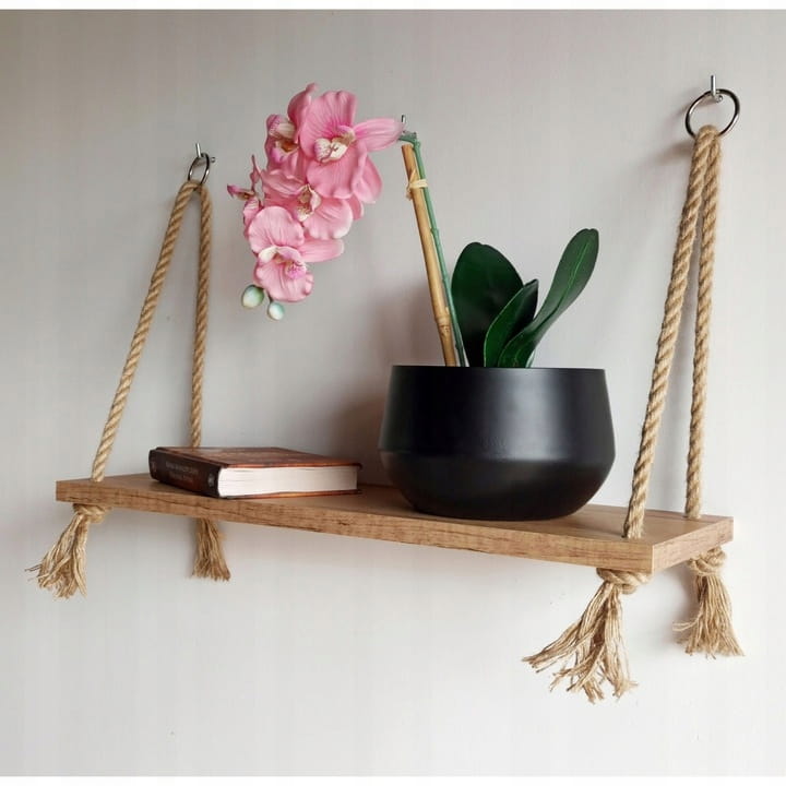 Inspirowane stylem loft, boho półki przydadzą się w salonie, przedpokoju, sypialni, pokoju dziennym a nawet w biurze. Prezentowane wiszące półki ścienne wprowadzą ład i porządek w Twoim pomieszczeniu. Te praktyczne meble uporządkują Twoje trofea, pięknie oprawione zdjęcia czy też inne przedmioty jak świeczki, figurki, książki czy też kwiaty doniczkowe.