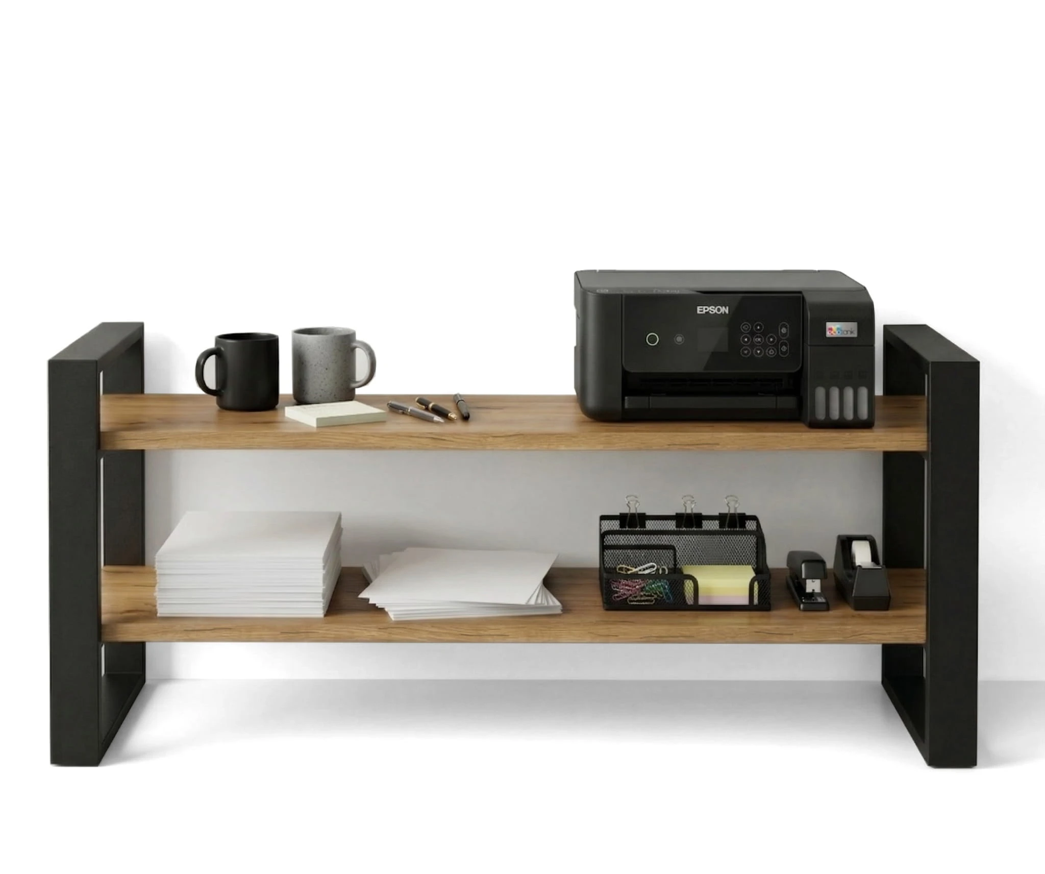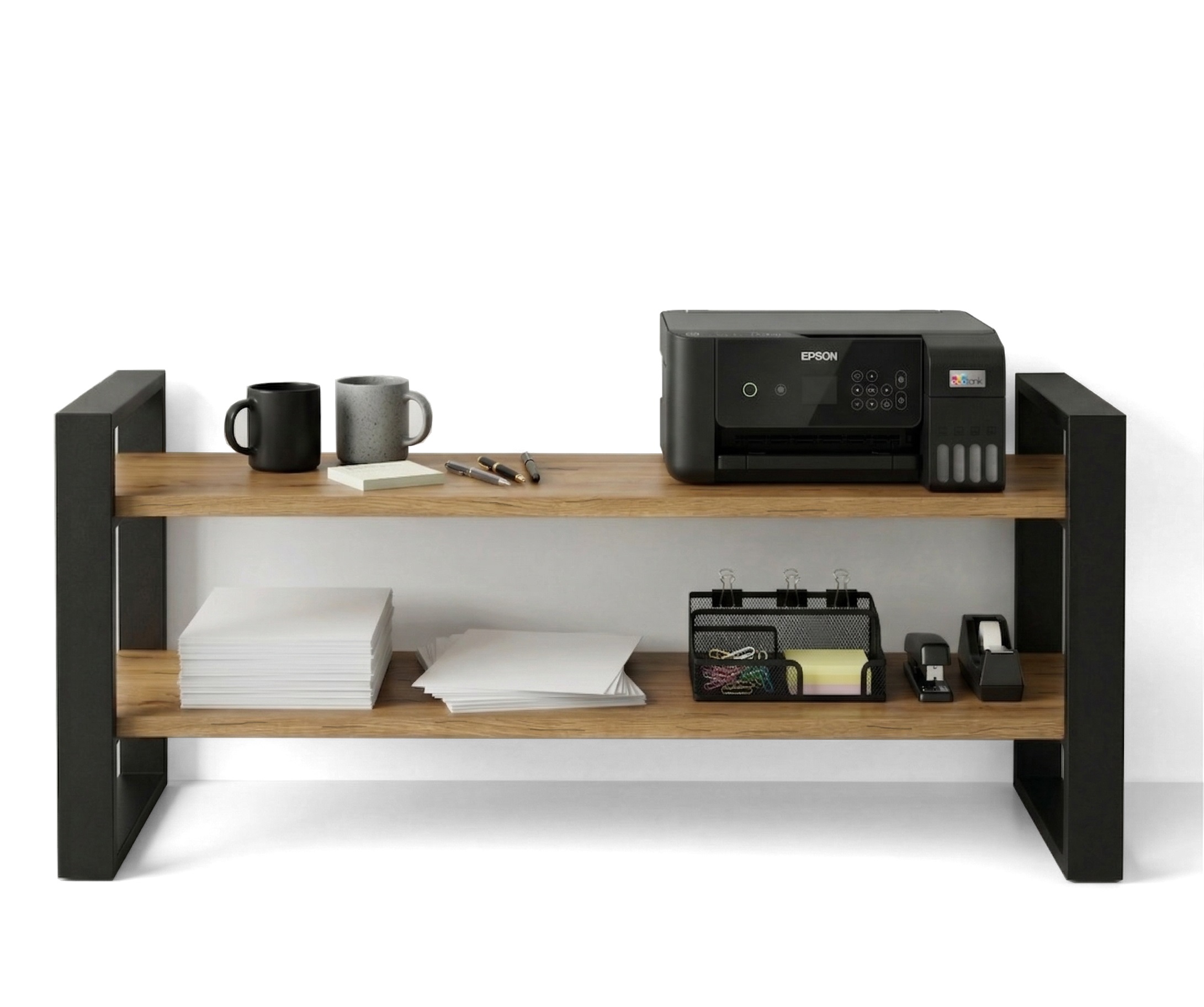 Nowoczesny regał loftowy o wysokości 87 cm to idealne połączenie stylu industrialnego z funkcjonalnością. Szerokość 120 cm i dwie przestronne półki o głębokości 38 cm zapewniają mnóstwo miejsca na książki, dekoracje, rośliny czy akcesoria biurowe.
