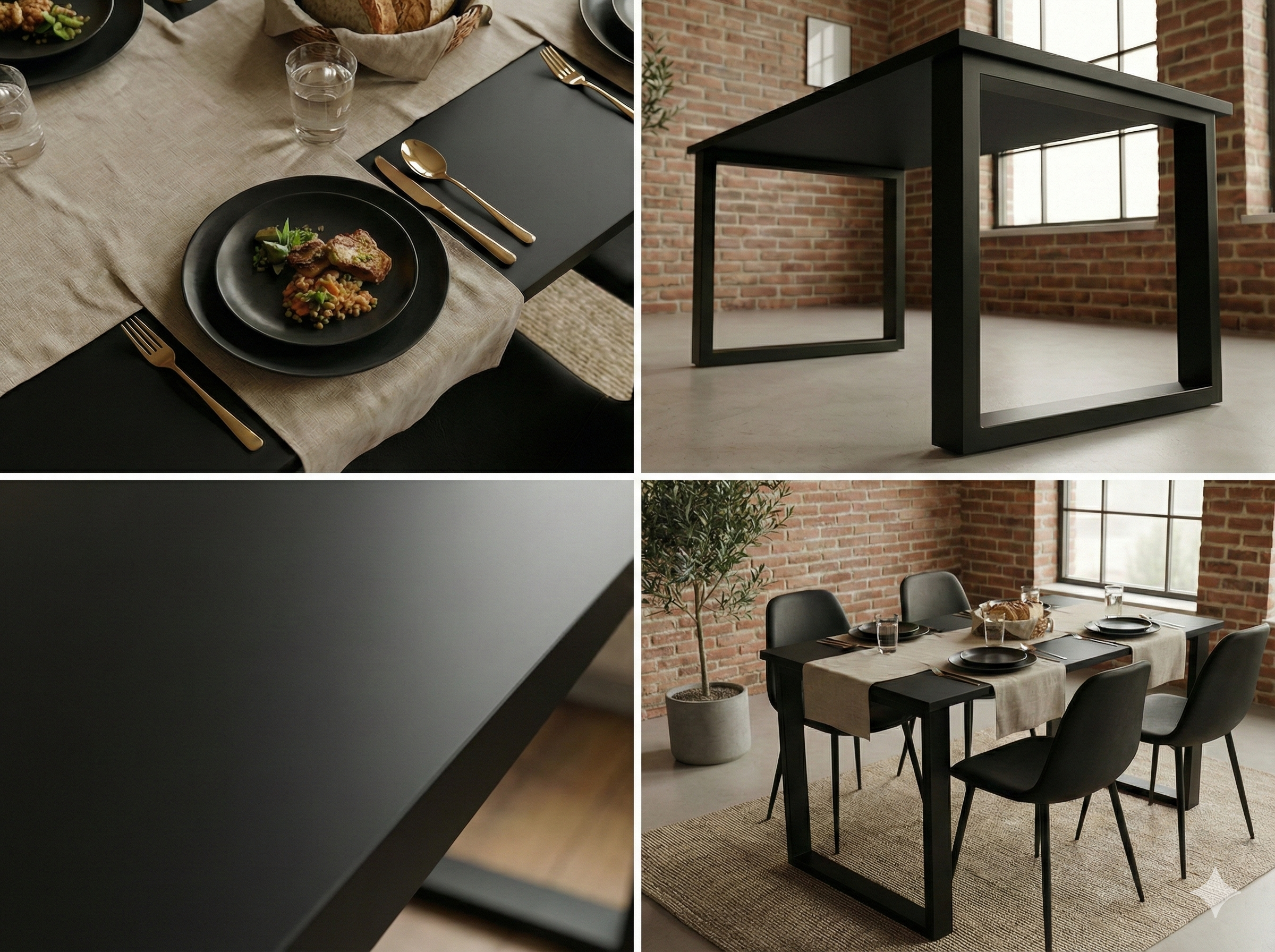 Stół kuchenny do jadalni loft 120x60 cm w kolorze Czarny NOGI METALOWE BLAT 18 MM