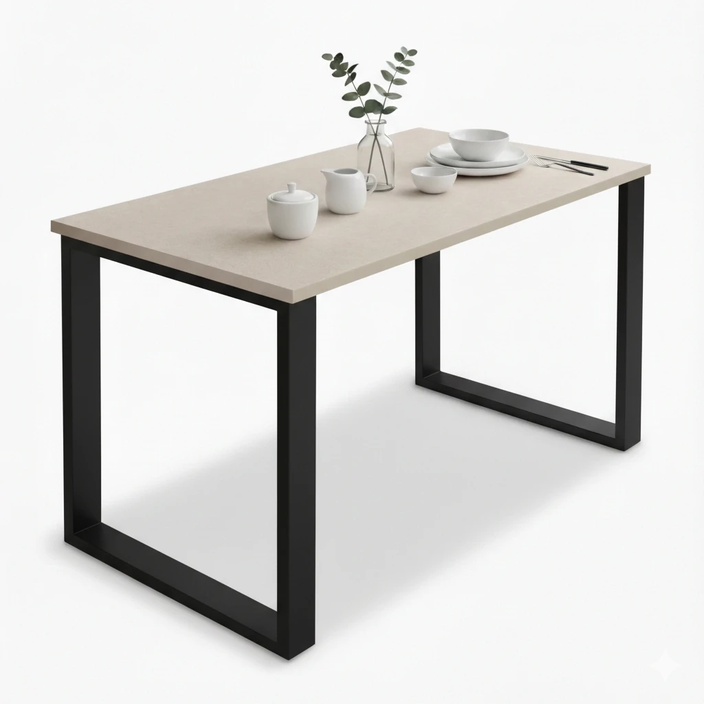 Blat o wymiarach 120 x 60 cm i grubości 18 mm zapewnia solidność i wygodę użytkowania. Metalowe nogi o profilu 6x2 cm w kolorze czarnym nadają mu charakteru będąć jednocześnie stabilnym fundamentem.