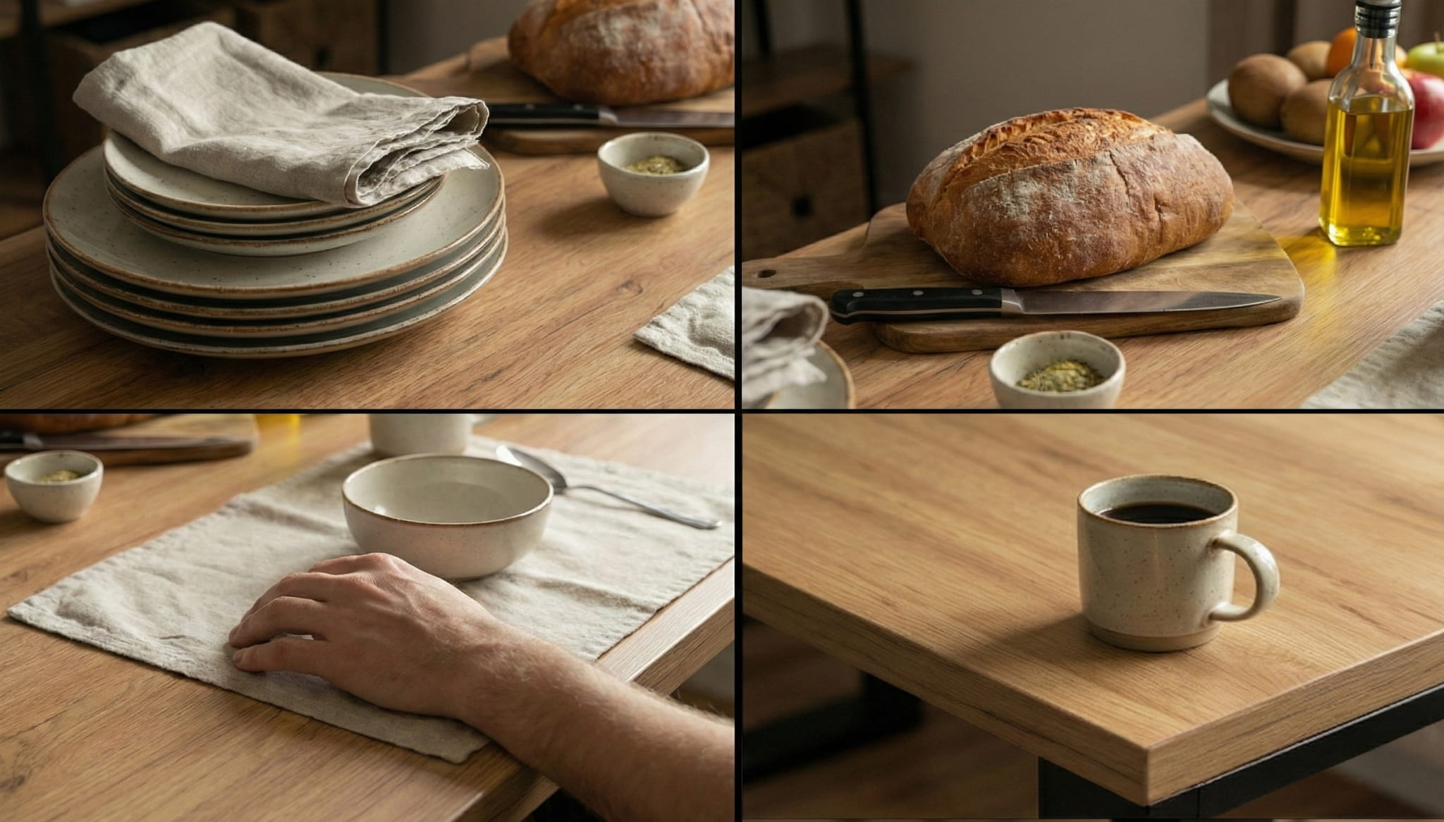 ✅Pogrubiony blat o grubości 36 mm jest szczególnie atrakcyjny i funkcjonalny w stole jadalnianym z kilku powodów: