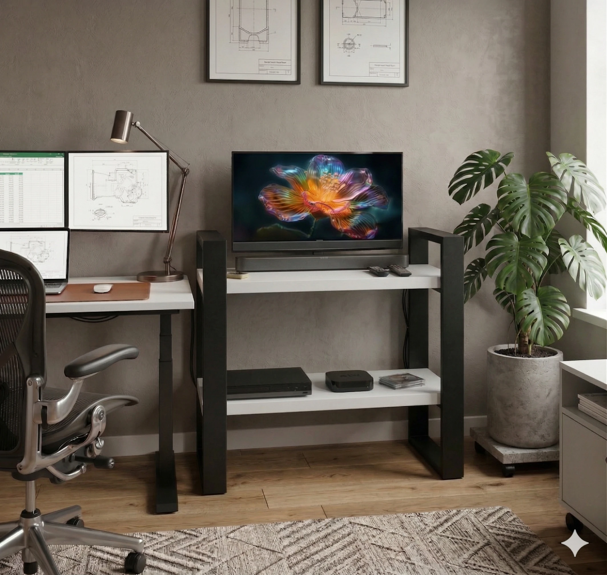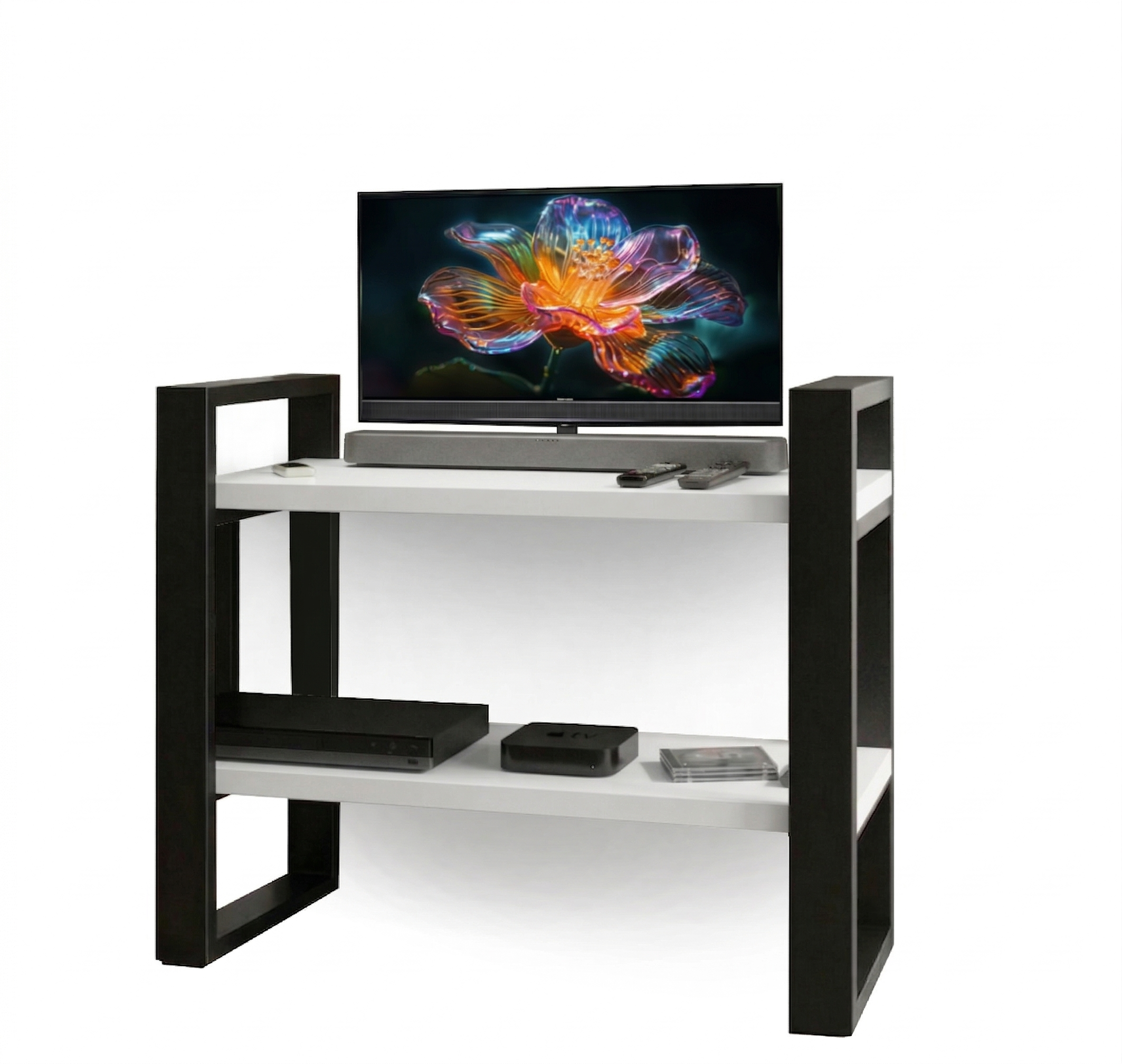 Nowoczesny regał loftowy RTV o wysokości 87cm to idealne połączenie stylu industrialnego z funkcjonalnością. Szerokość 80 cm i dwie przestronne półki o głębokości 38 cm zapewniają mnóstwo miejsca na buty.