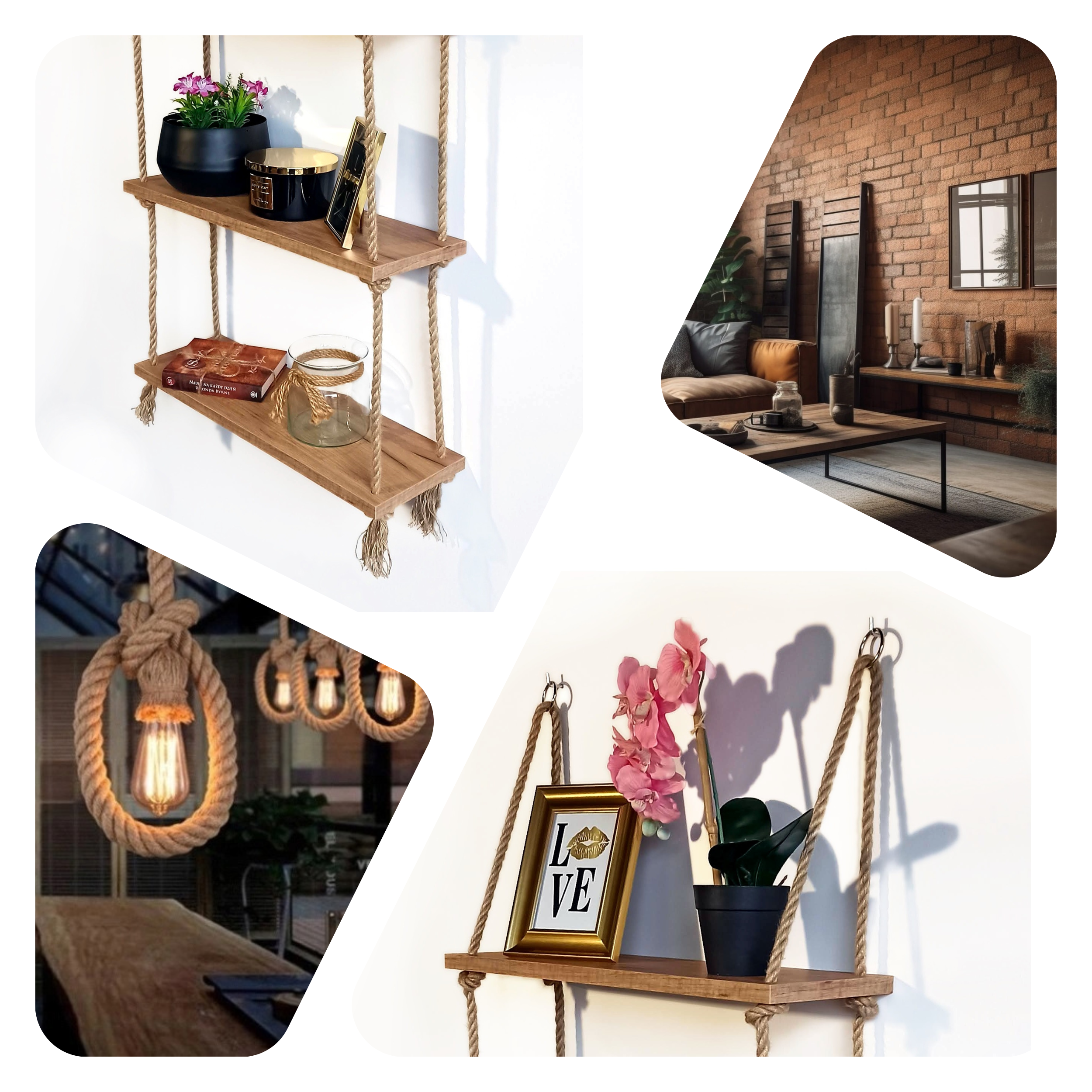 Półeczki posiadają wolną od charakterystycznego i nieprzyjemnego zapachu linę dekoracyjną jutową.